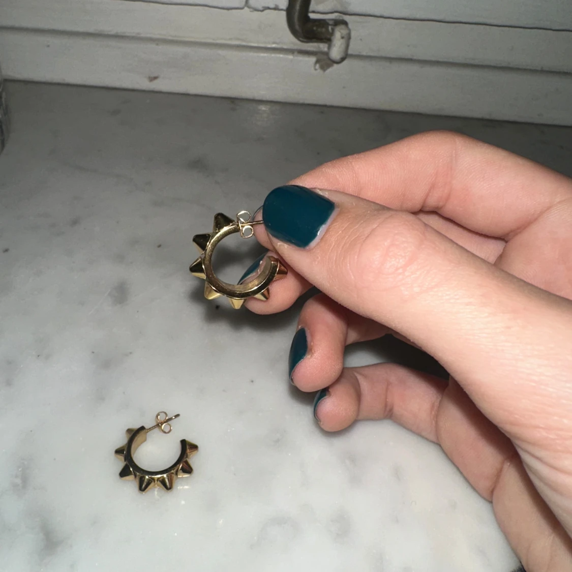 Jättefina guldiga örhängen med spikar, är i helt nytt skick och nästan aldrig använd!