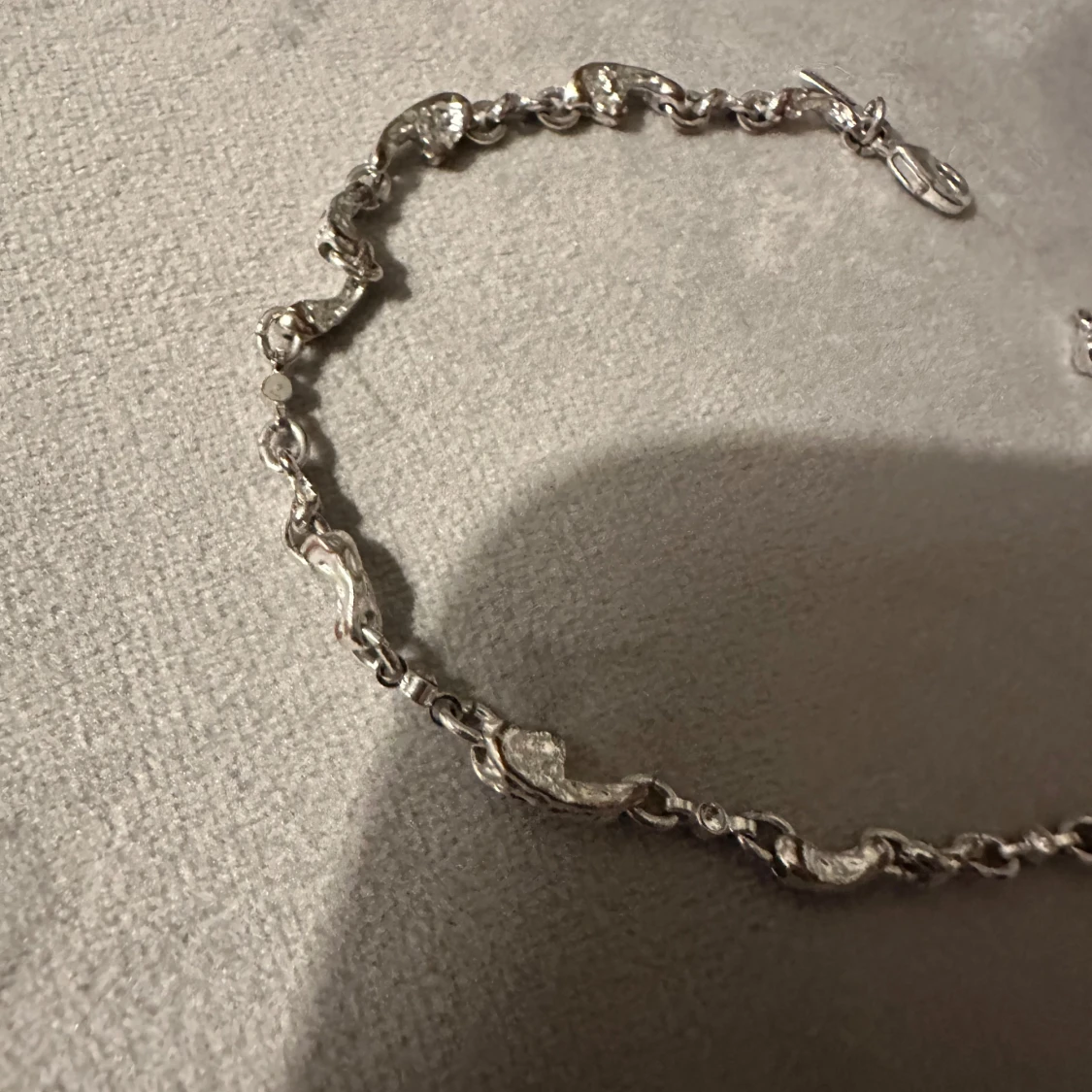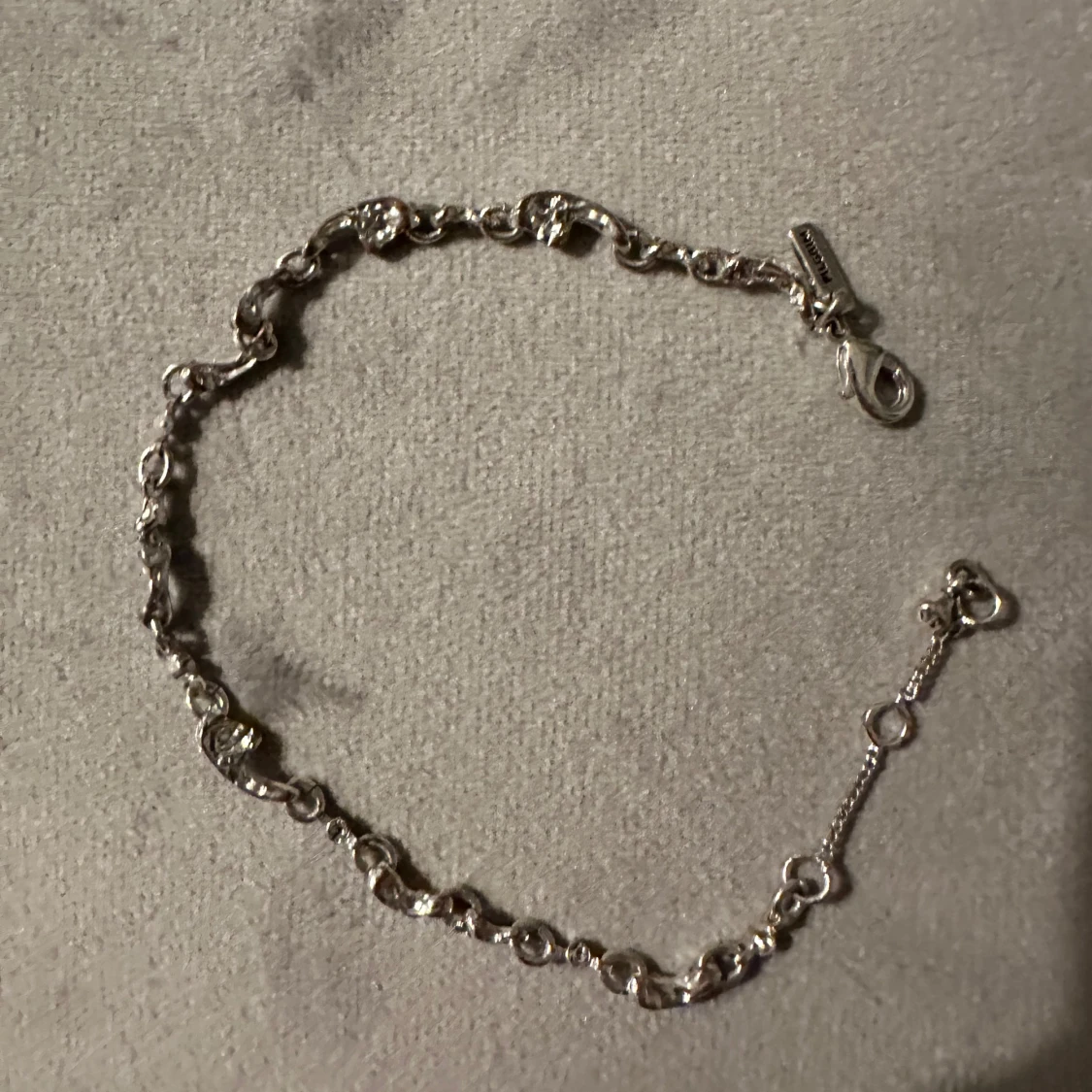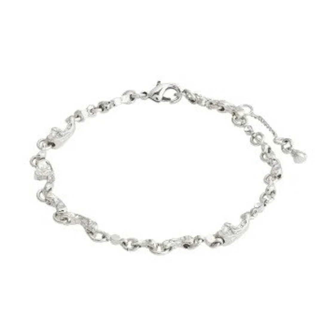 Säljer ett stilrent silverfärgat armband med en unik kedjedesign. Armbandet har en säker karbinhake och en liten justerbar kedja för perfekt passform. Perfekt för både vardag och festliga tillfällen. Märket är Pilgrim. Finns tecken på användning men det är fortf i bra begagnat skick.