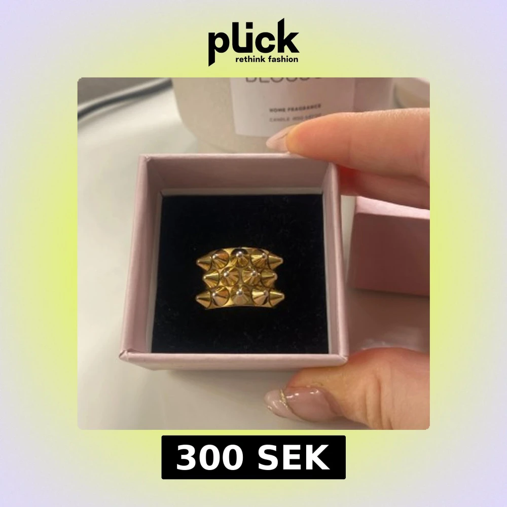 Snygg guldfärgad ring från Edblad med ett unikt designmönster av små pyramidformade nitar. Perfekt för att ge en edgy touch till din stil. Kommer i en elegant rosa ask. I storlek 16.80 som motsvarar storlek S