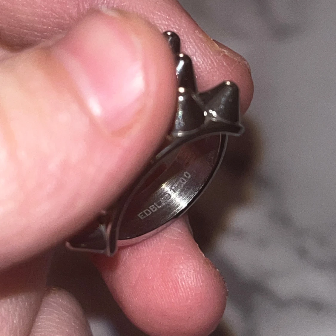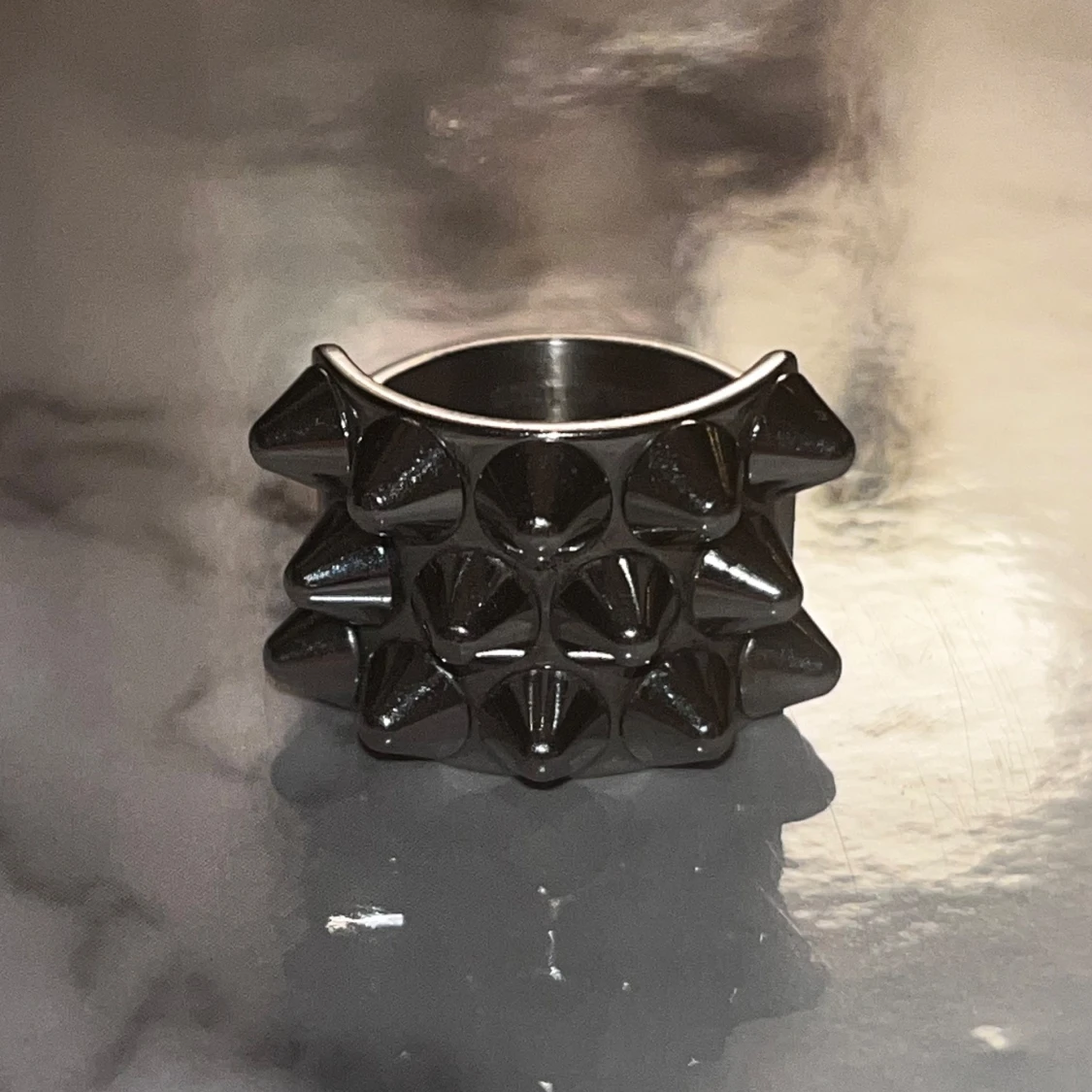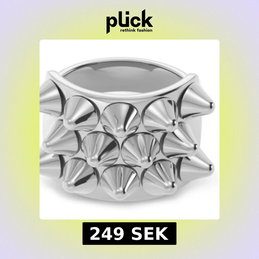 Unik och edgy ring i silverfärg med framträdande nitar. Nypris 399kr kan tänka mig att byta för en guldig ring i samma storlek ( xs, 16.00 ). 🩵🩵 Kontakta mig först innan du köpet!! För fler bilder skriv privat.