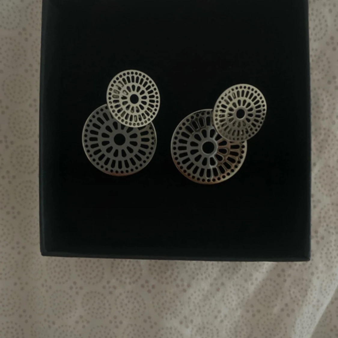 Snygga silvriga örhängen från Edblad med ett unikt, cirkulärt mönster. Perfekta för att ge en stilren touch till din outfit. Kommer i originalförpackning. Använda fåtal gånger pris kan diskuteras!
