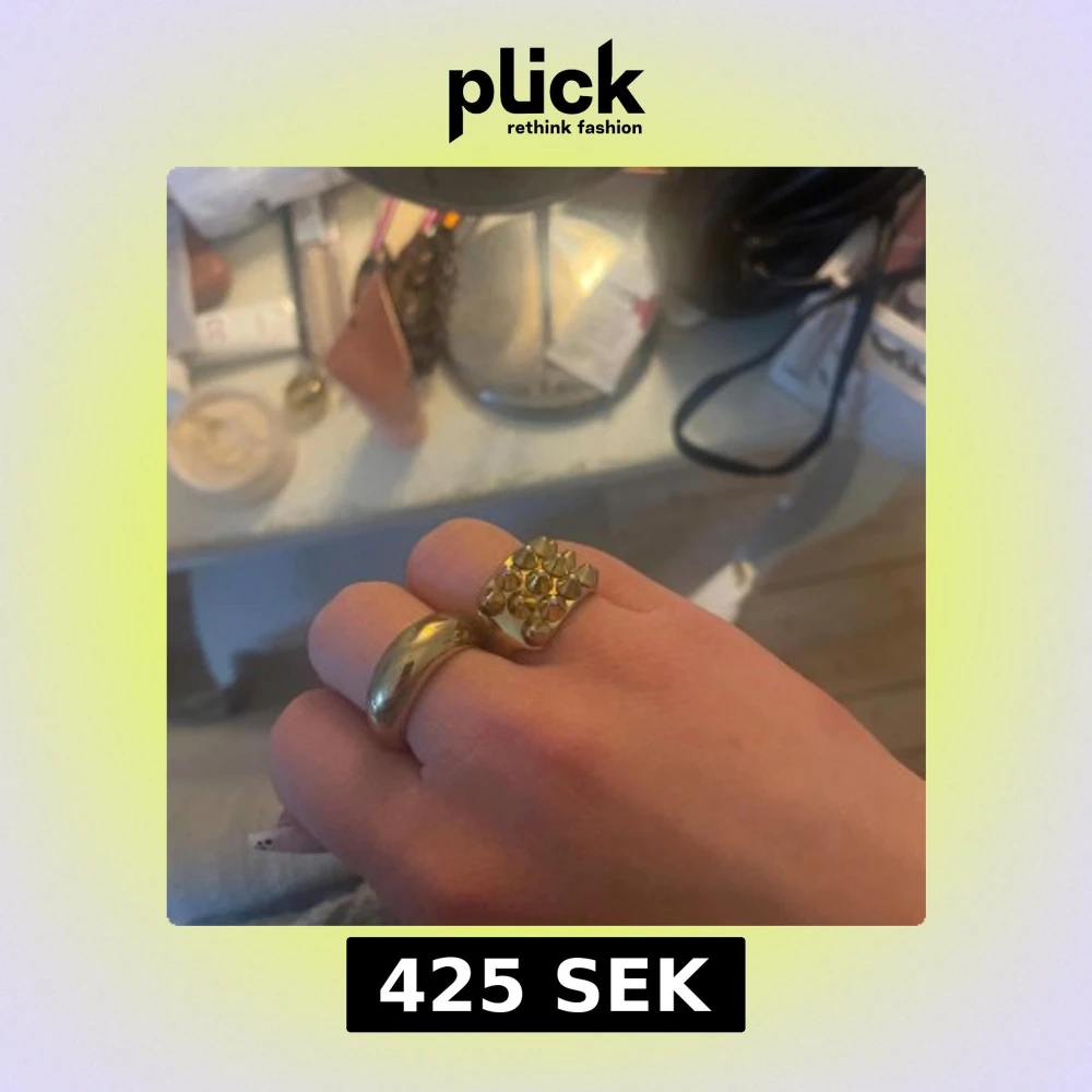 Säljer båda dessa ringar då det ej är min stil längre. Den med nitar har använts en del men den rundade ringen har använts ca 2 ggr. Den guldiga med bitar e i stl 19,5 och rundade 18,5