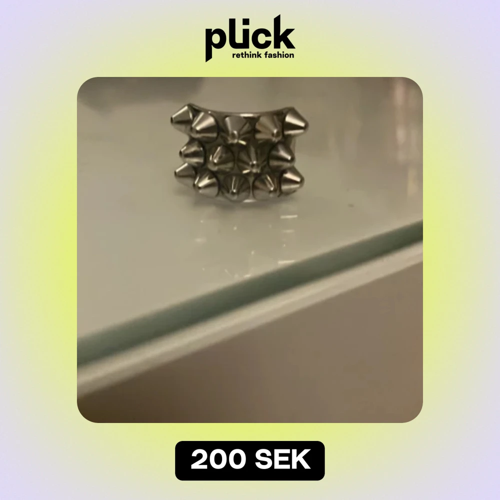 Edblad ring  - SĂ€ljer min ring frĂ„n Edblad i blankt silverfĂ€rgat material med konformade nitar runt hela ringen. Snygg och edgy design som sticker ut och passar perfekt för dig som gillar statement-smycken. Kommer i original ask och Ă€r i 16.00. Inte nĂ„ mycket anvĂ€nd! Nypris: 349kr!â˜ș