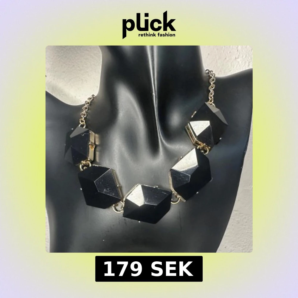 Vintagehalsband i klassisk 80-talsstil med stora facetterade delar i svart akryl och justerbar kedja i guldfärgad metall. Ca 58 cm långt och upp till 2,8 cm brett. Perfekt som kraftfull accessoar till fest eller en minimalistisk outfit. Ingen prutning – men jag erbjuder bundlerrabatt. Jag rensar smyckesskrin och garderob – spana gärna in mina andra annonser! ⸻