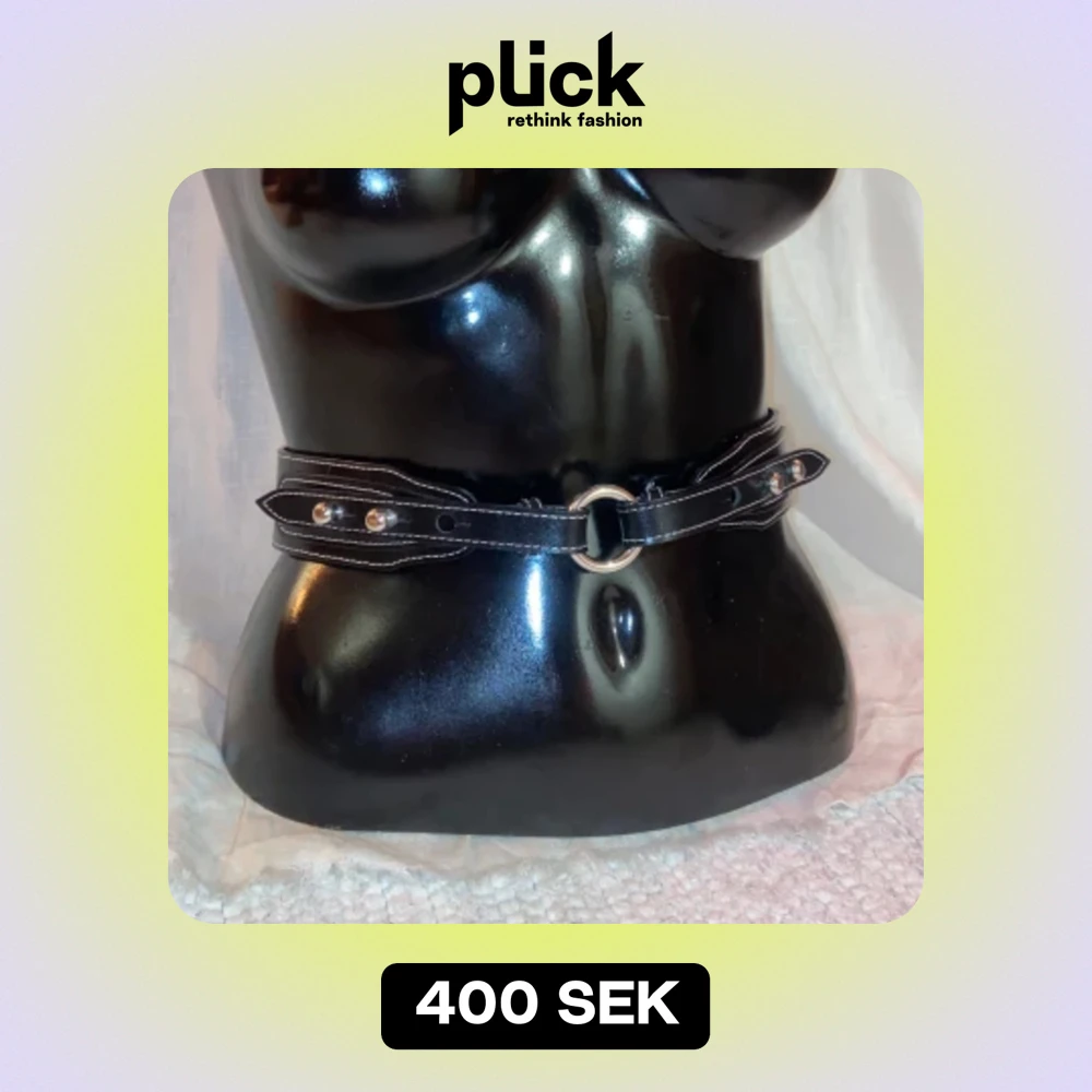 Svart bälte med silver detaljer och knäppning. Äkta läder! Markerad som storlek XS. Största omkrets: 71cm. Minsta omkrets: 66cm