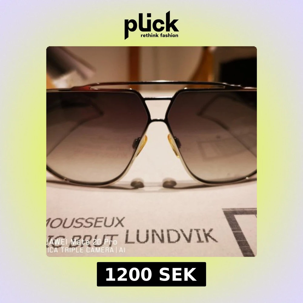 Säljer ett par stilrena runda glasögon från Efva Attling med tunn metallbåge i en ljusbrun nyans. Glasögonen har en klassisk och tidlös design som passar till många olika stilar. Klick on är praktisk. På det andra bilderna ser ni Carrera solglasögon i en röd nyans nytt och ennat par solglasögon av Efva Atling X Smarteyes