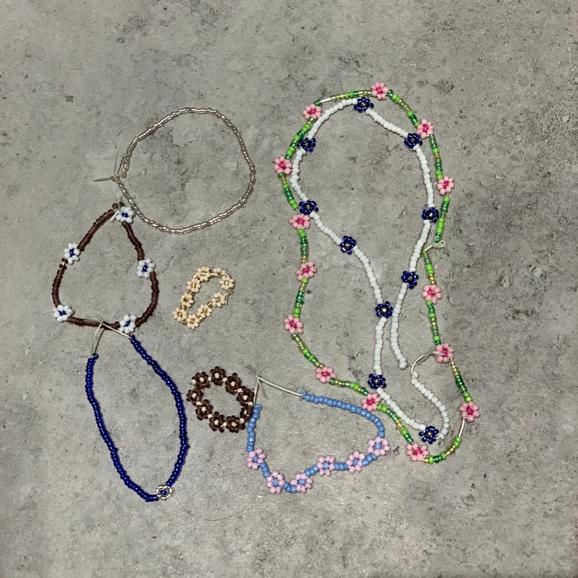 PÀrlsmycken i alla möjliga fÀrger. Dessa Àr bara test sÄ de kommer sÄklart vara ordentligt gjorda i slutet för er köpare:) alla gÄr at fÄ i alla storlekar eller fÀrgkombinationer. Ringar 20, armband 35kr och halsband 35-55kr beroende pÄ vad man önskar:) frakten ligger pÄ 11kr och jag ska lÀgga ut bilder pÄ alla mina pÀrlor, om ni Àr instresseradd sÄ kan jag skicka bilder pÄ pÀrlorna