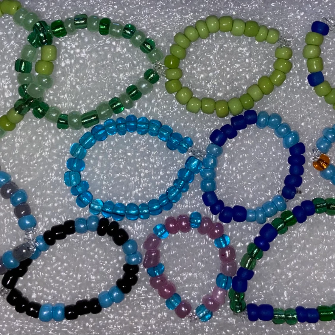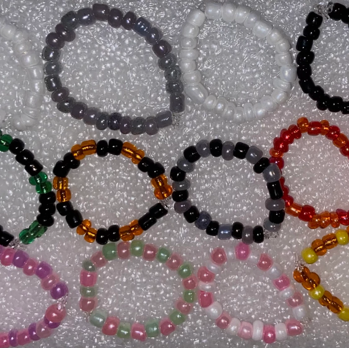 Egengjorda ringar. Finns i olika storlekar och färger! Önskar man något speciellt är det bara att skriva privat💜 5kr styck. Eller 5 stycken för 20kr!