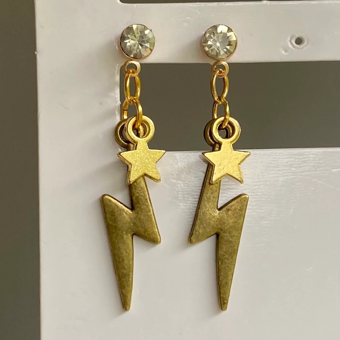 As coola blixtörhängen med stjärnor och kristaller, nickelfria, finns i olika modeller i både guld och silver, 49kr/par 💖⚡️⚡️
