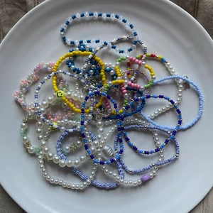 Säljer alla dessa pärlade smycken! -kolla på mina inlägg för att se priser och även noggrannare på smyckena!💓 - Alla dessa är gjorda utan förlängningskedja för att de ska kunna vara lätta att matcha med andra smycken!💐 Älskar alla dessa armbanden!⭐️