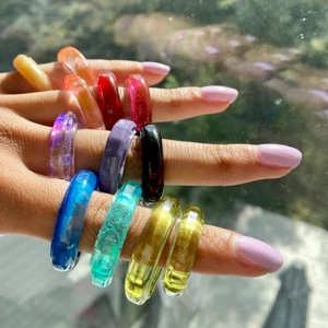 Coola egengjorda epoxy ringar, 39kr/ st eller 3 för 100kr, går att få i andra färger och storlekar än de på bilden (valfri) Lägger upp igen då många ville se hur de såg ut på ❤️💜🤍💙