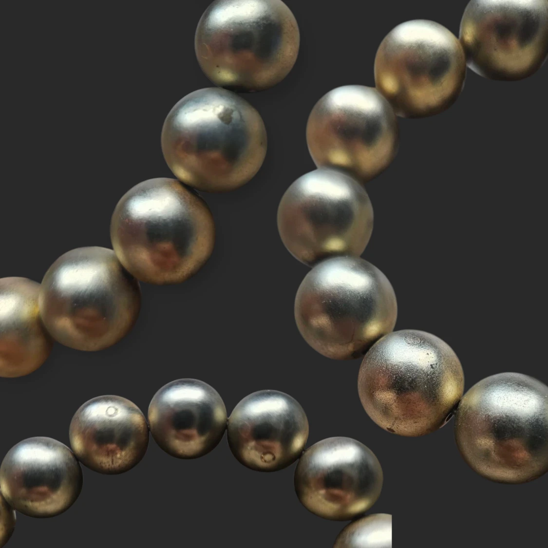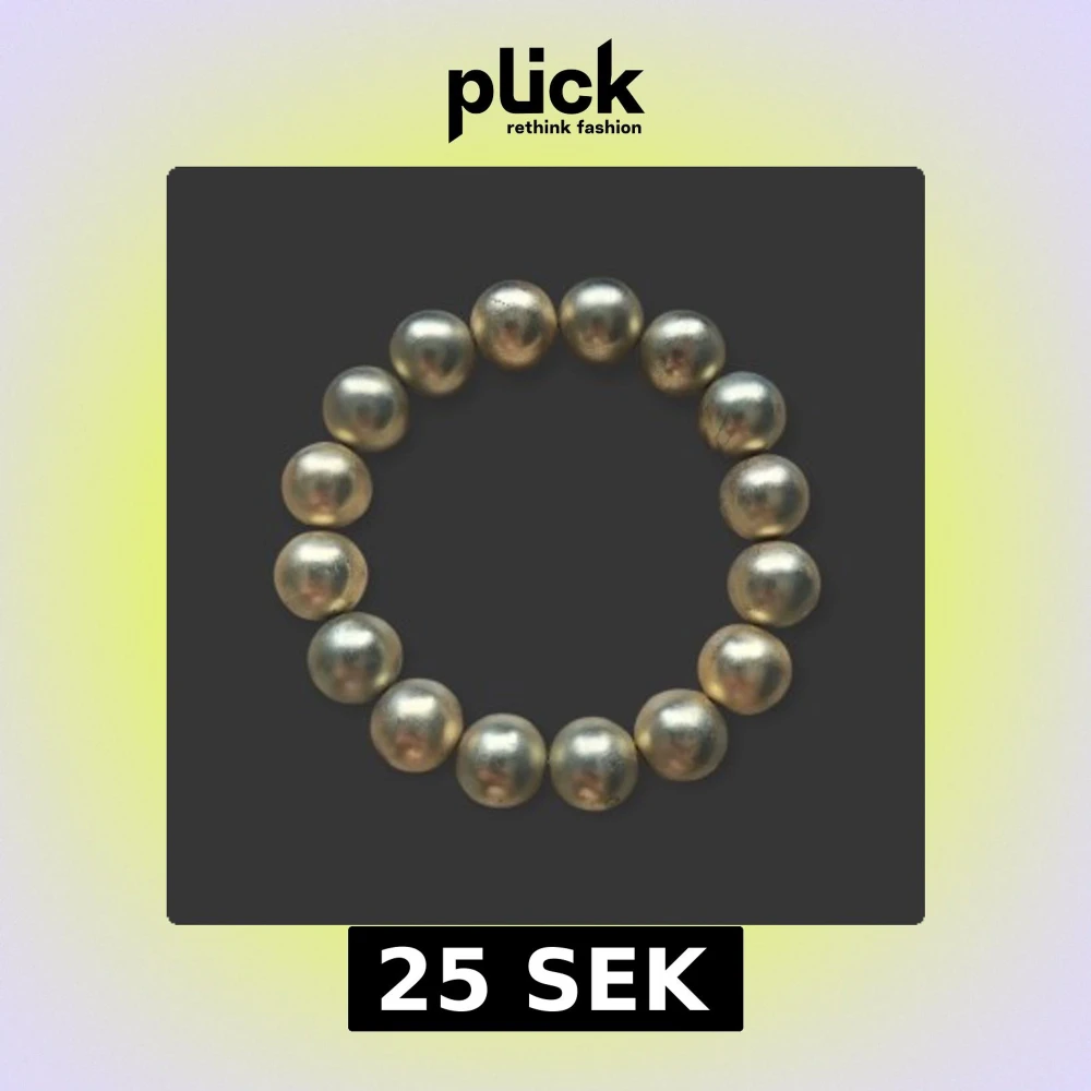 Coolt armband med stora, runda pärlor i metallic guldfärg. Pärlorna är trädda på en elastisk tråd så det är enkelt att ta på och av. Perfekt accessoar för att ge din outfit lite extra edge. Små defekter längst armbandet (se Bild 3)