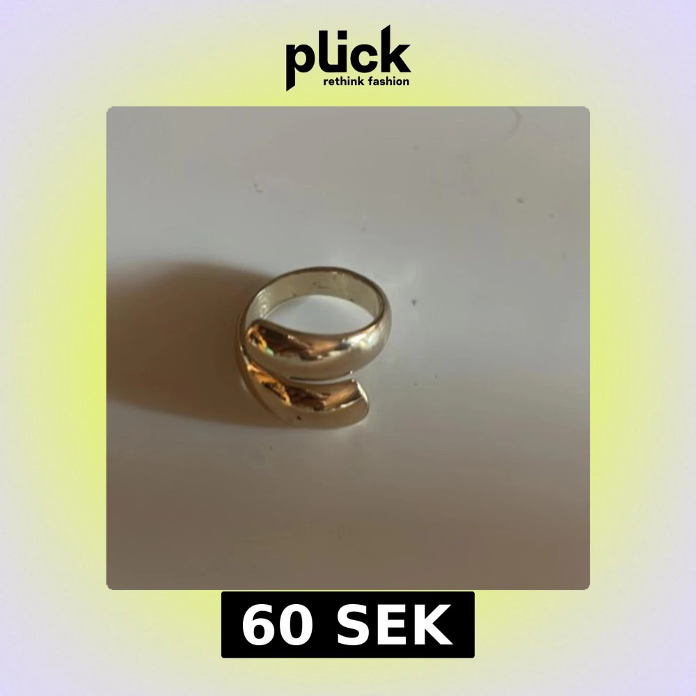 Säljer en elegant och stilren guldring med en unik, böjd design. Perfekt för att ge en modern touch till din look. Passar alla tillfällen och är lätt att matcha med andra smycken. ROSTFRITT STÅL!❤️