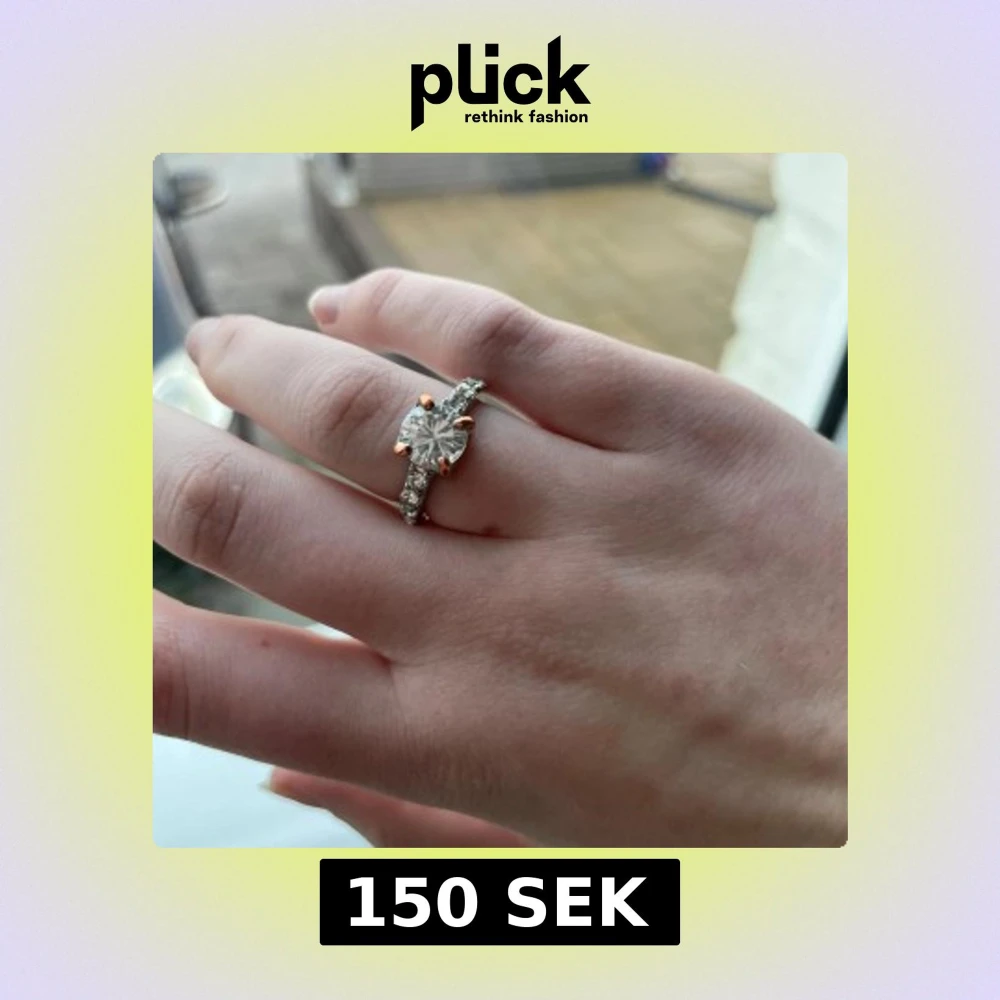 Vacker silverring med en stor, gnistrande sten i mitten och mindre stenar längs bandet. Perfekt för speciella tillfällen eller som en förlovningsring. Asken med kommer ej! Obs kan finnas spår av rost, men aldrig använd och syns knappt!