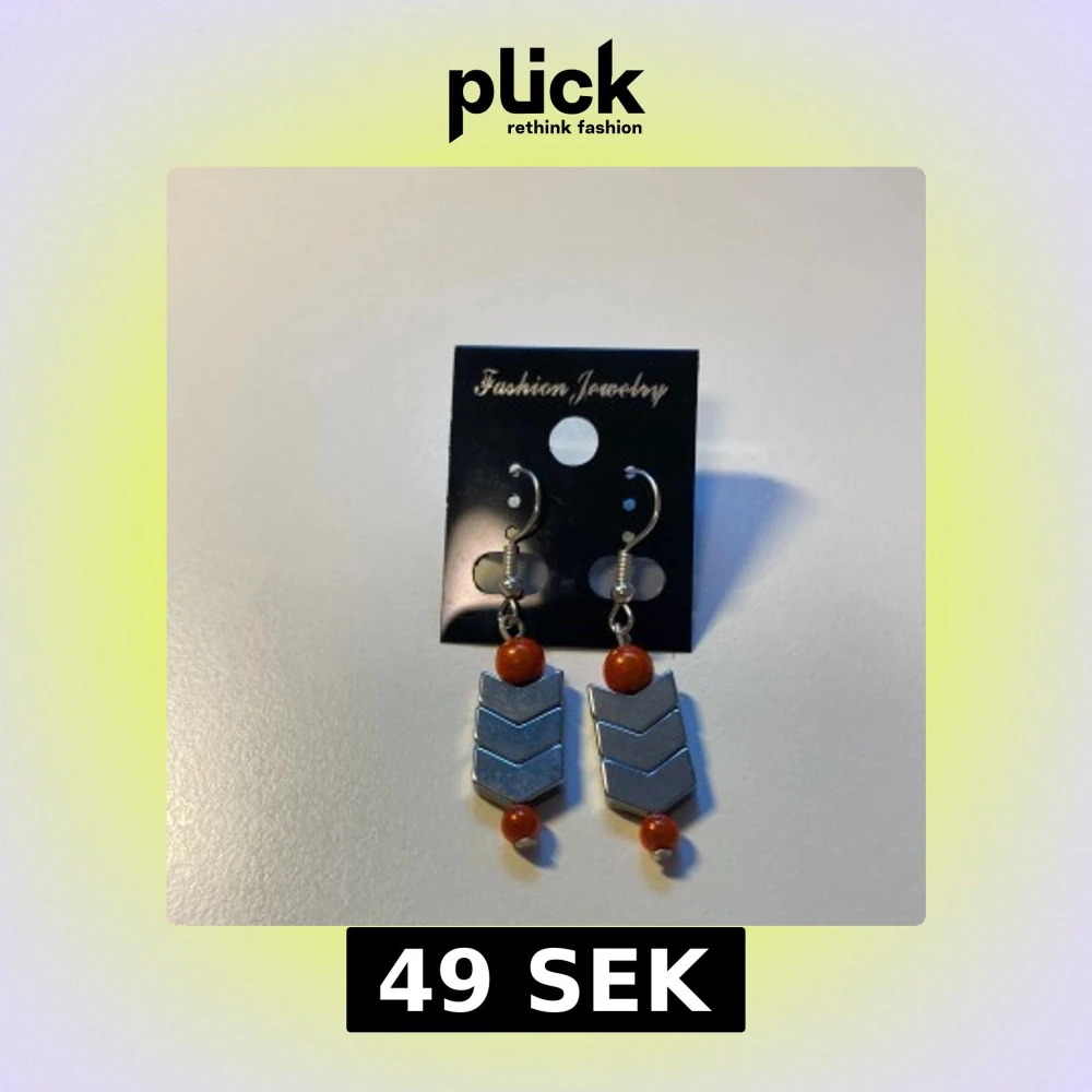 Unika örhängen med silvriga, pilformade detaljer och glansiga orange pärlor. Snyggt geometriskt uttryck som sticker ut och ger en cool vibe till din stil. Perfekta för dig som gillar att mixa färg och metall i dina accessoarer.