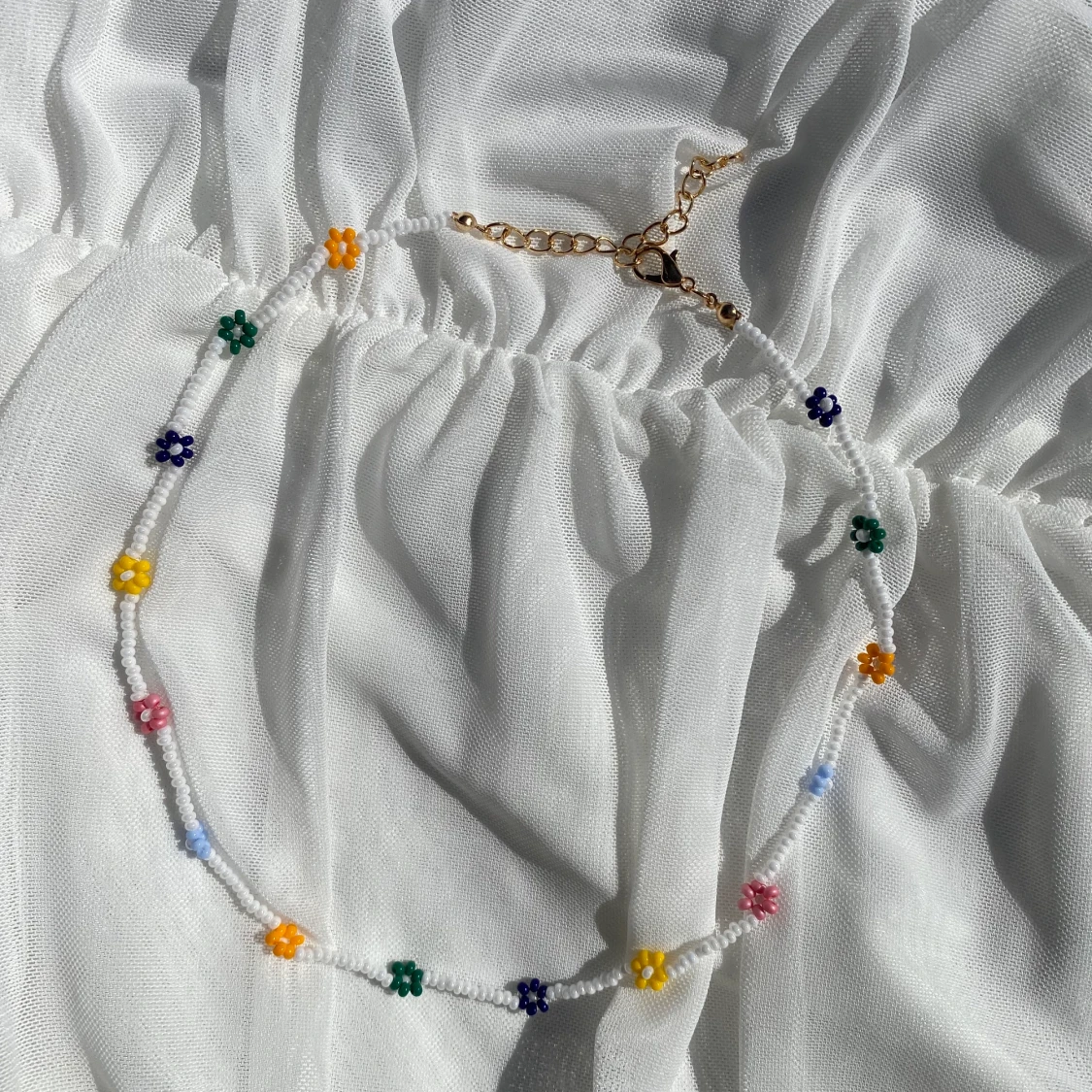 Aliné necklace är ett pärlhalsband med flera olika färger som verkligen livar upp din outfit! Justerbart med förlängningskedja och karbinhake, standardfrakt 19:-