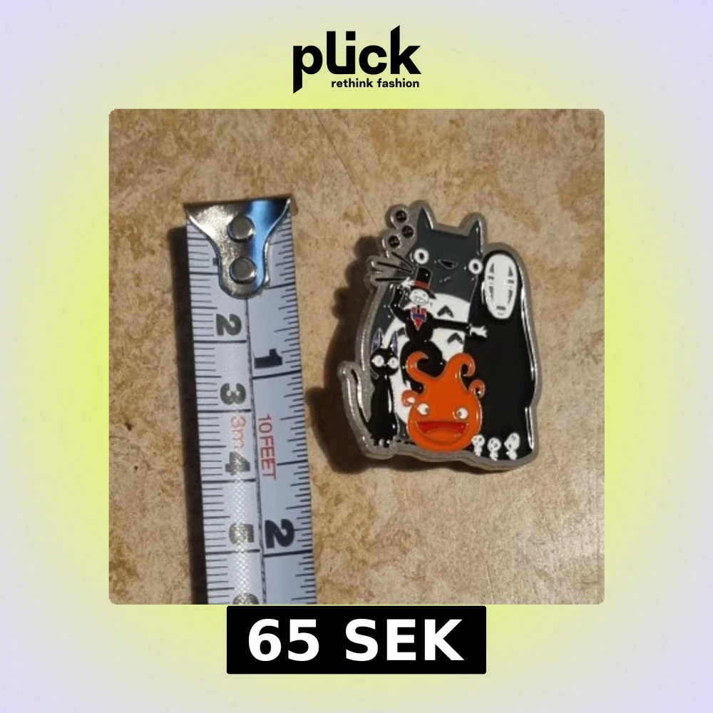 En färgglad emaljpin med flera kända Studio Ghibli-karaktärer. Perfekt för att dekorera väskor eller kläder med en touch av magi och nostalgi.