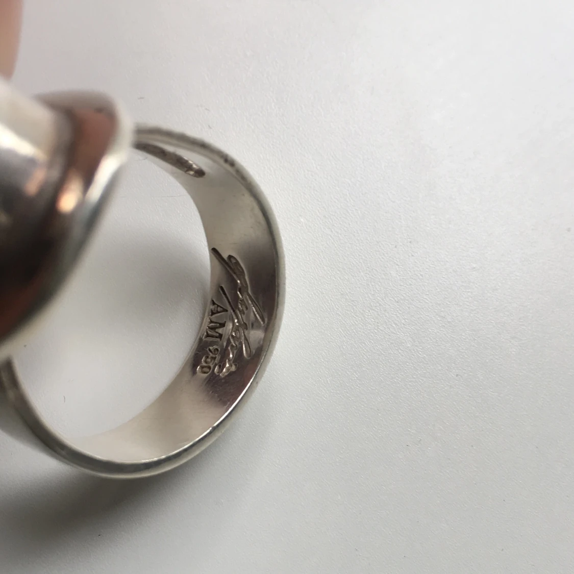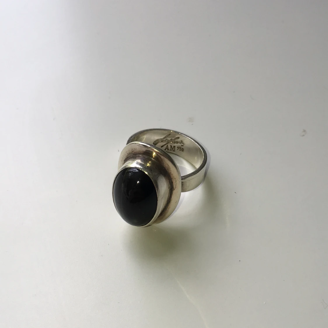 Äkta silver (stämpel på andra bilden) med ’kattöga’ sten, storleken är anpassbar, nypris 950