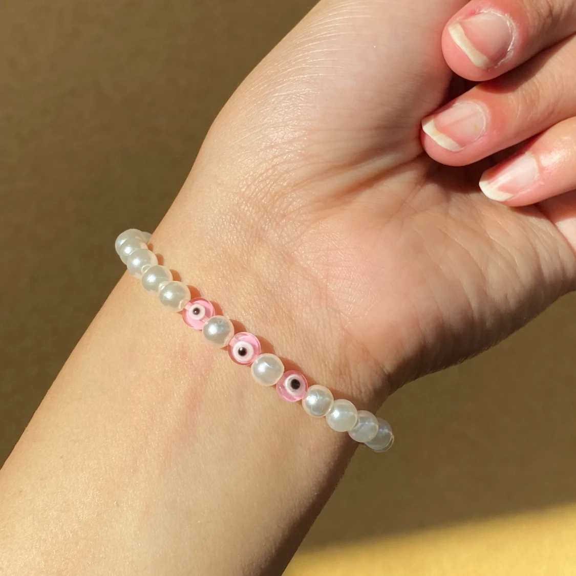 Baby pink Evil Eye pĂ€rlarmbandđž