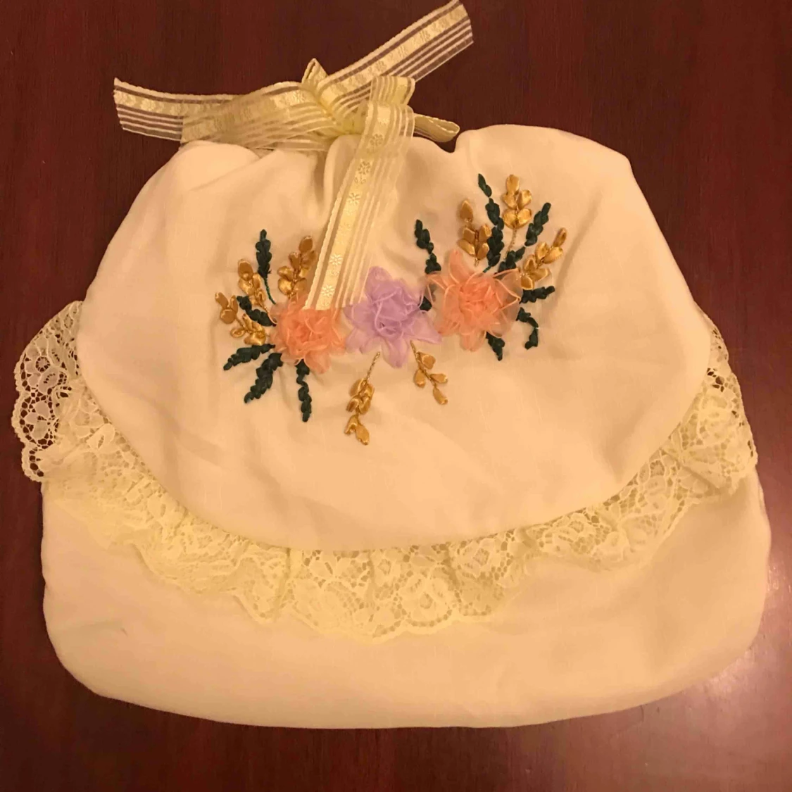 Handgjord påse med blommiga detaljer. T ex till underkläder eller stumpor.