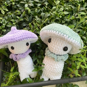 Själv virkande svampdockor, jag kan göra dockorna i flera olika färger men de två i bilden är bara exemplar. Du får välja två färger när du beställer en svamp. Svampen kan ta upp till 3 dagar innan den är redo för sitt nya hem. Köpare står för frakt :)