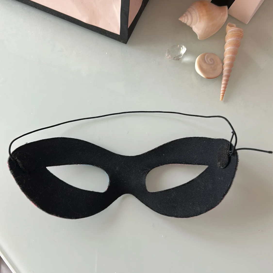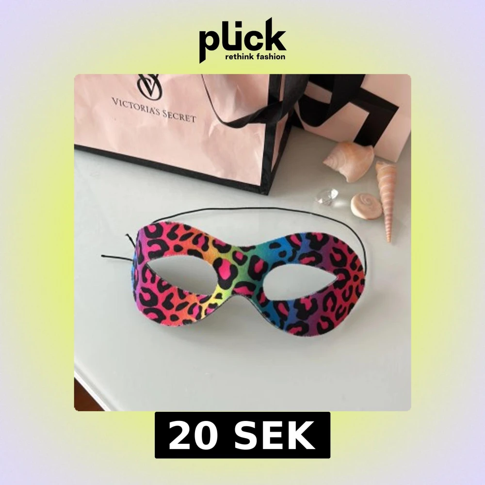 Säljer en cool mask med leopardmönster i regnbågens färger på framsidan och svart tyg på baksidan. Masken har en smidig elastisk snodd för enkel användning och är perfekt för maskerad eller fest. Materialet känns mjukt och följsamt mot huden.