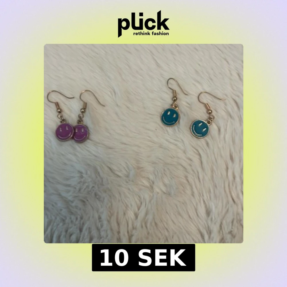 Säljer sju par örhängen: lila och blå smileys, blå björnar och orange björnar, glassar i rött/grönt och blått/gult samt gula fyrklöver och turkosa fjärilar🌈. Alla har hängande krokar i metall och är perfekta för dig som gillar lekfulla accessoarer. 10kr för ett par örhängen och 20 för 2 par🩷