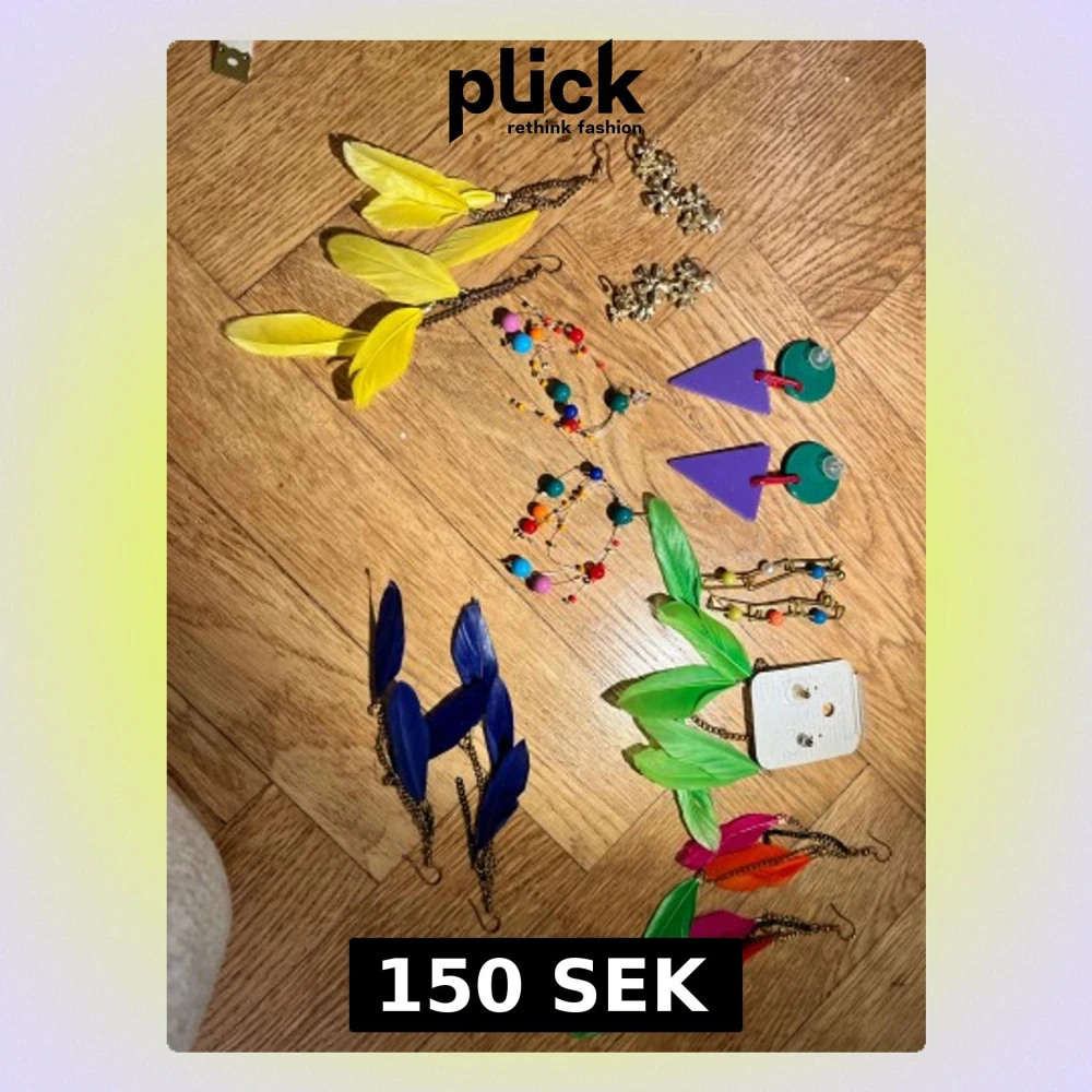 Säljer ett gäng coola örhängen i olika färger och former! Här finns fjäderörhängen i gult, blått, grönt, rosa och orange, samt örhängen med färgglada pärlor och ett par lila och gröna geometriska örhängen. Perfekt för dig som gillar att sticka ut med accessoarer!