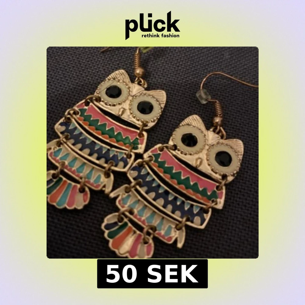Charmiga örhängen i form av ugglor med färgglada detaljer i rosa, blått, grönt och orange. De har svarta ögon och är gjorda i en metallisk finish. Perfekta för att ge en lekfull touch till din outfit.