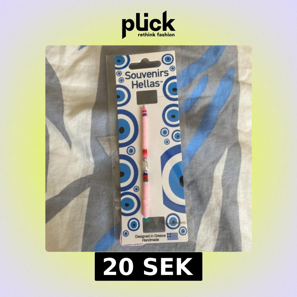 Handgjort armband från Grekland med rosa tråd, färgglada pärlor i rött, grönt, blått och rosa samt en transparent pärla i mitten. Perfekt accessoar för dig som gillar unika och färgstarka smycken. Oöppnad, köpt för cirka 5€