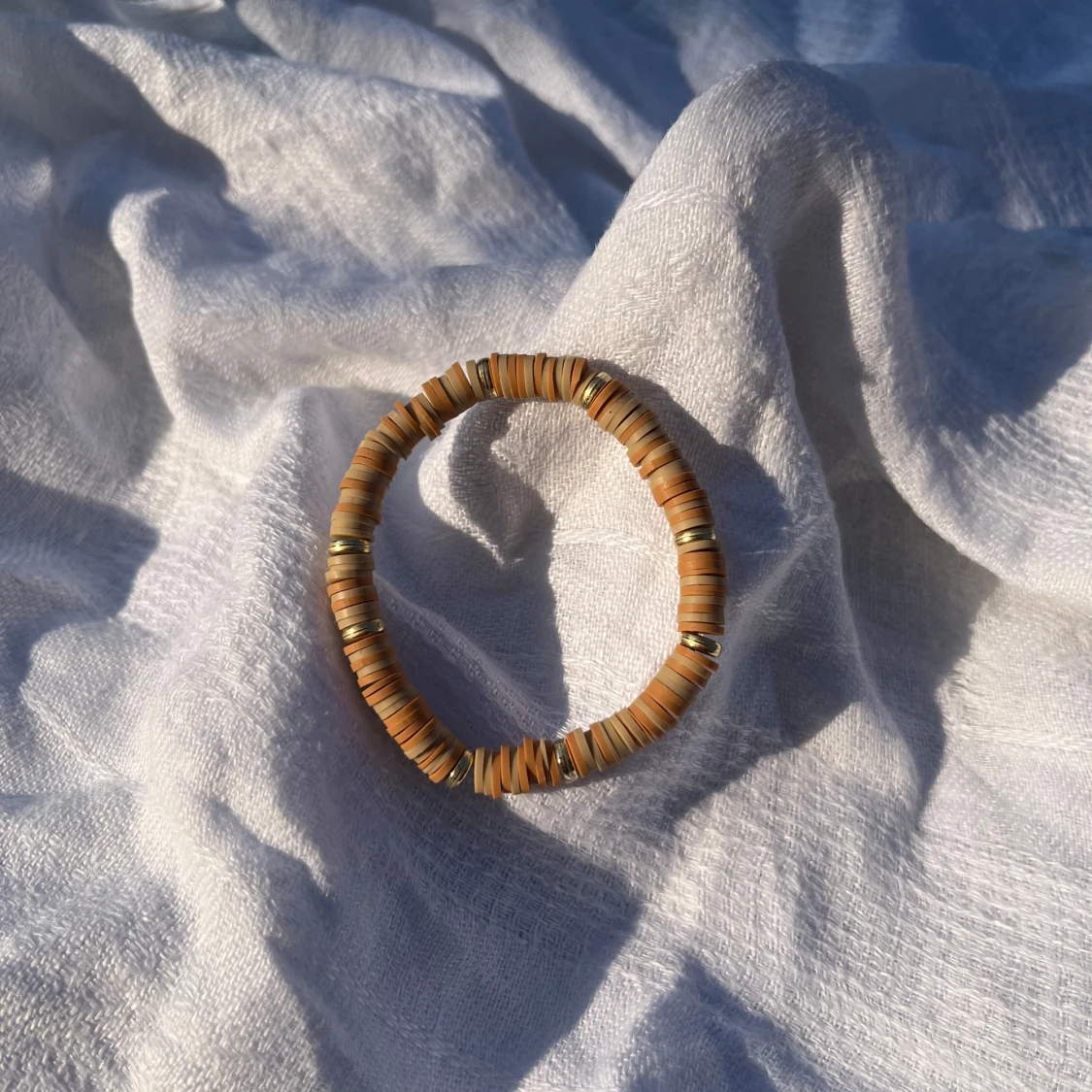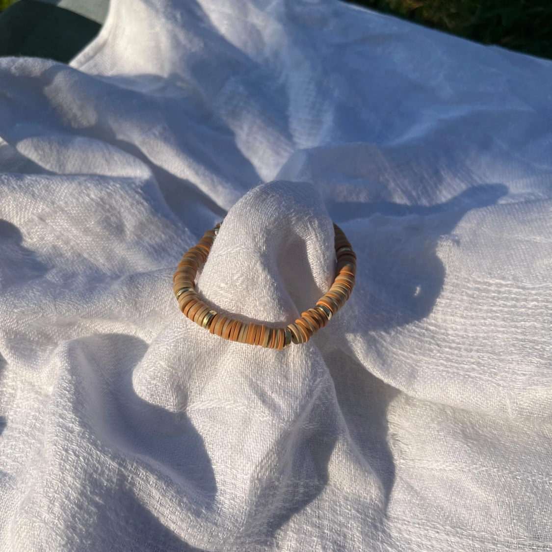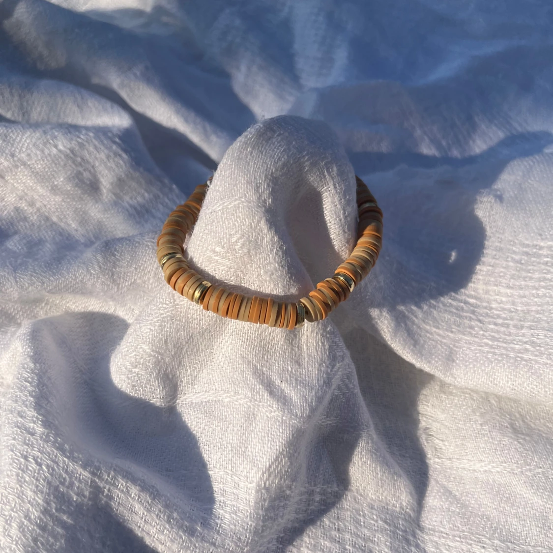 Säljer ett superfint armband med små, runda pärlor i olika nyanser av orange och beige. Perfekt för att ge en bohemisk touch till din outfit. Armbandet är elastiskt och passar de flesta handleder. Perfekt accessoar för sommaren!