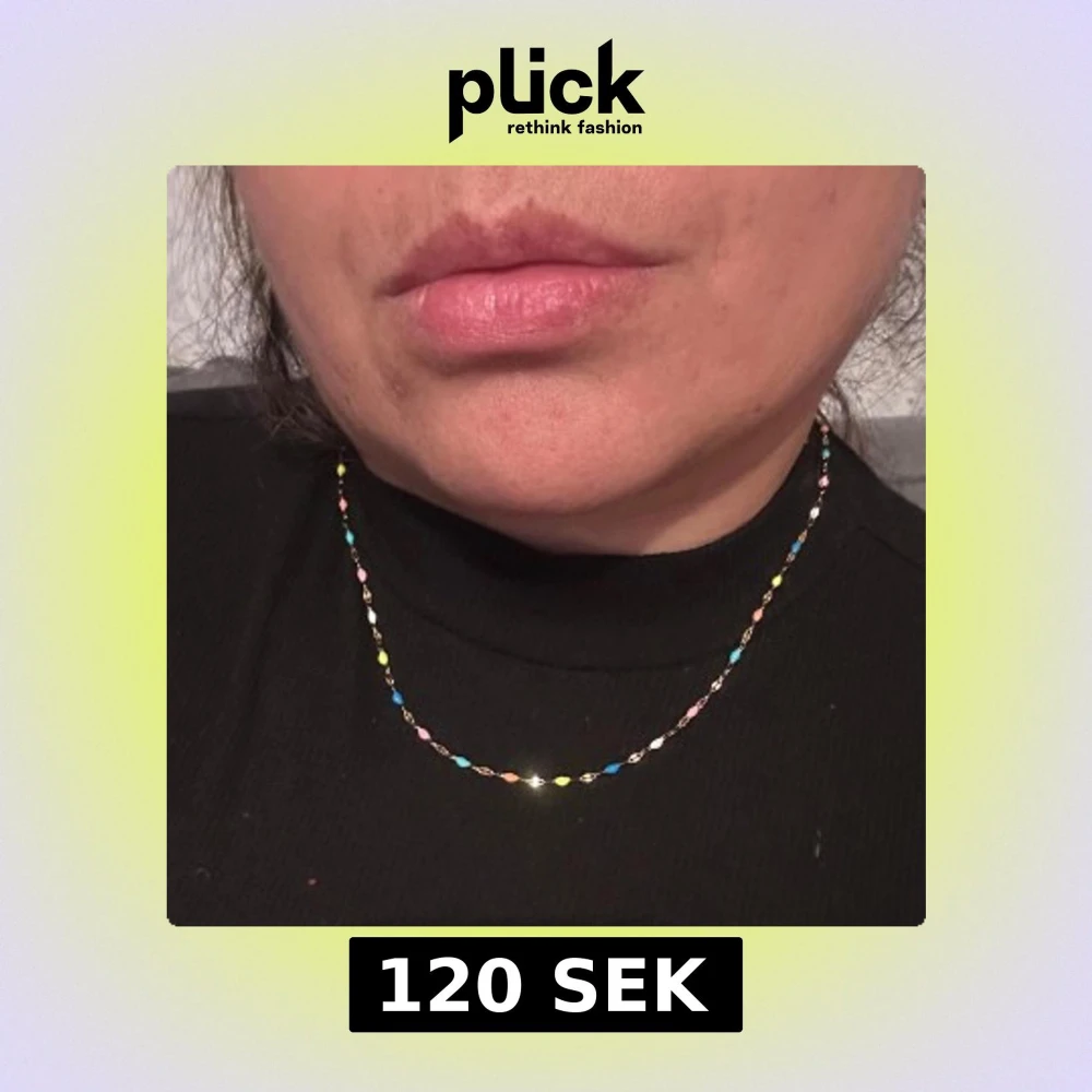 Snyggt halsband med tunn guldfärgad kedja och små pärlor i olika färger som blå, rosa, gul, vit och orange. Kedjan är diskret men sticker ut med sina färgglada detaljer och passar perfekt för att ge din outfit en lekfull touch.