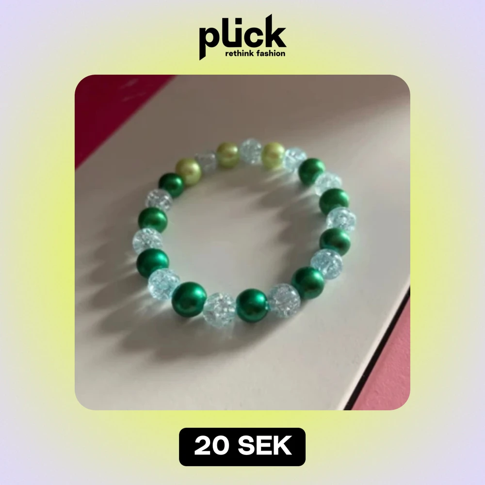 Säljer ett Handgjort supercoolt armband med gröna, ljusgröna och genomskinliga pärlor. Perfekt för att liva upp vilken outfit som helst! Armbandet är elastiskt och passar de flesta handleder. Perfekt för både vardag och fest! 🌟