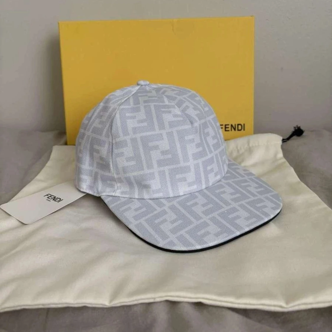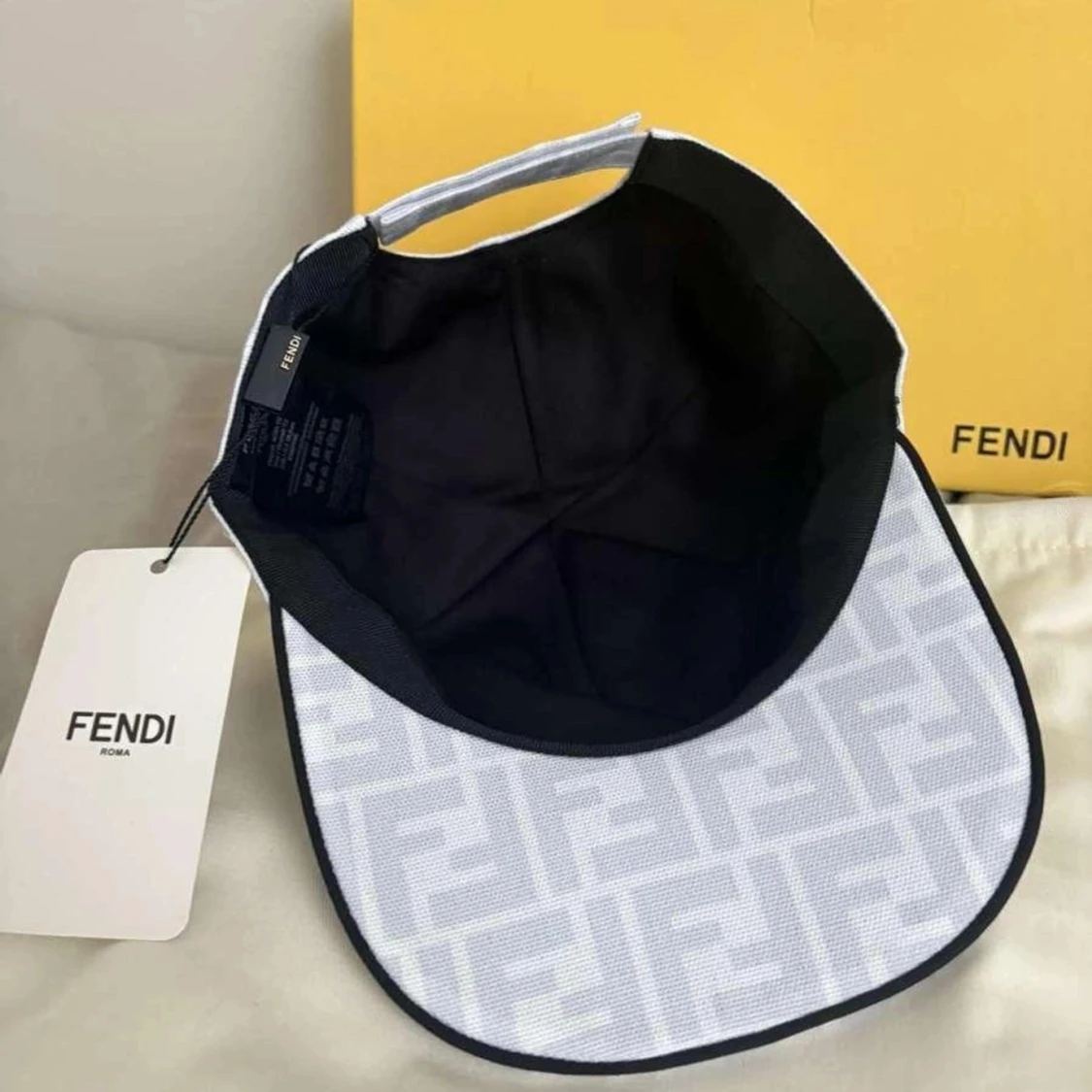 Exklusiv vit keps från Fendi med ikoniskt FF-mönster över hela kepsen. Klassisk böjd skärm och justerbar baksida. Tillverkad i ett lätt och slitstarkt material som passar perfekt till en clean och modern stil.
