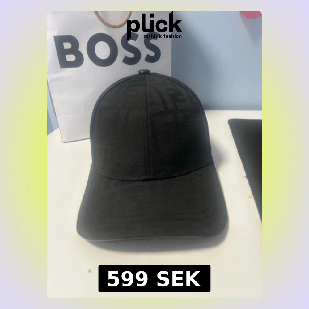 Snygg svart keps från Fendi med diskret FF-logomönster över hela ytan. Klassisk böjd skärm och justerbart spänne bak i svart läder med gulddetalj. Kepsen är tillverkad i ett slitstarkt tyg och har Fendi-logga på insidan. Perfekt för dig som gillar exklusiva accessoarer.