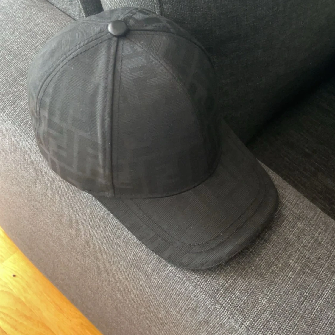 Snygg svart keps från Fendi med diskret FF-mönster över hela kepsen. Justerbar rem bak i svart skinn med Fendi-logga. Klassisk böjd skärm och stilren look som lyfter din outfit. Perfekt för dig som gillar designer och streetstyle.
