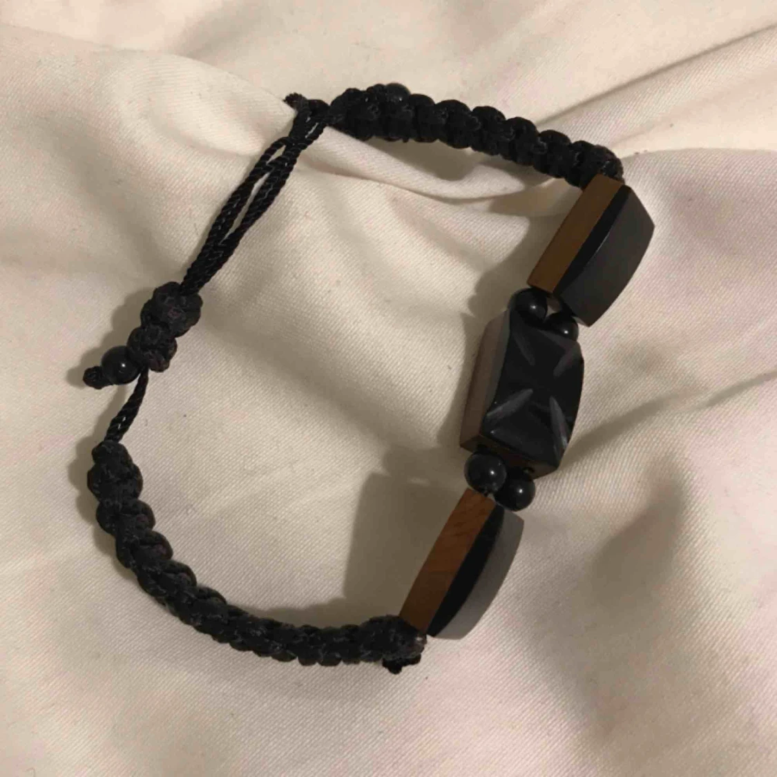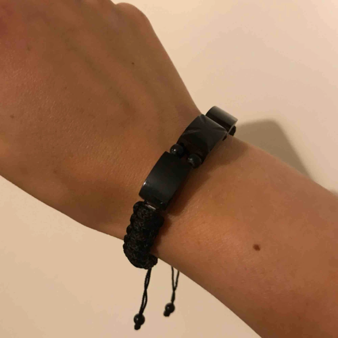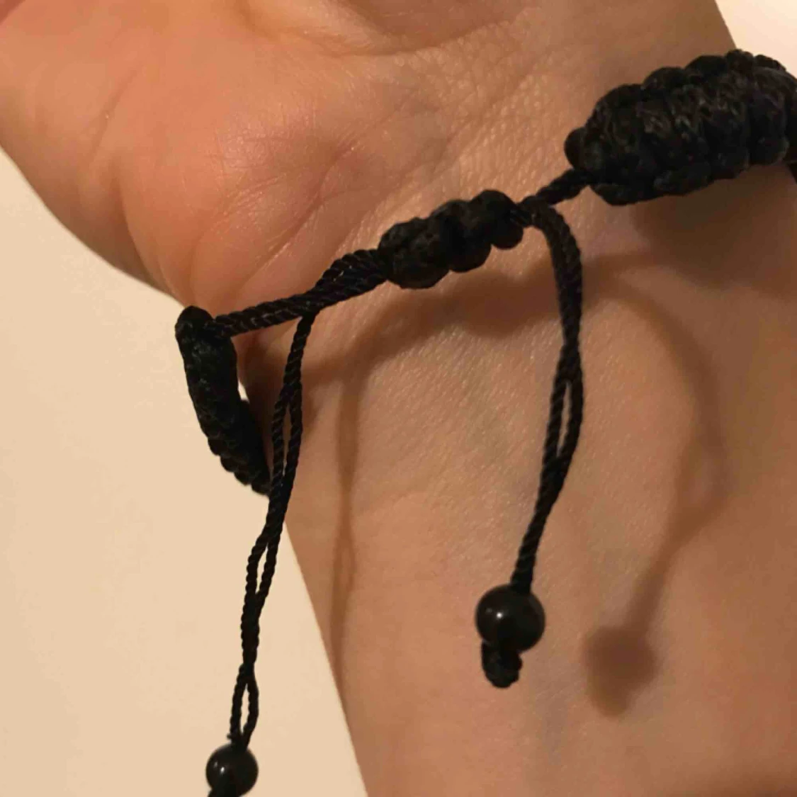 Black bracelet, plastic and durable thread. Almost new. Bought in the US.