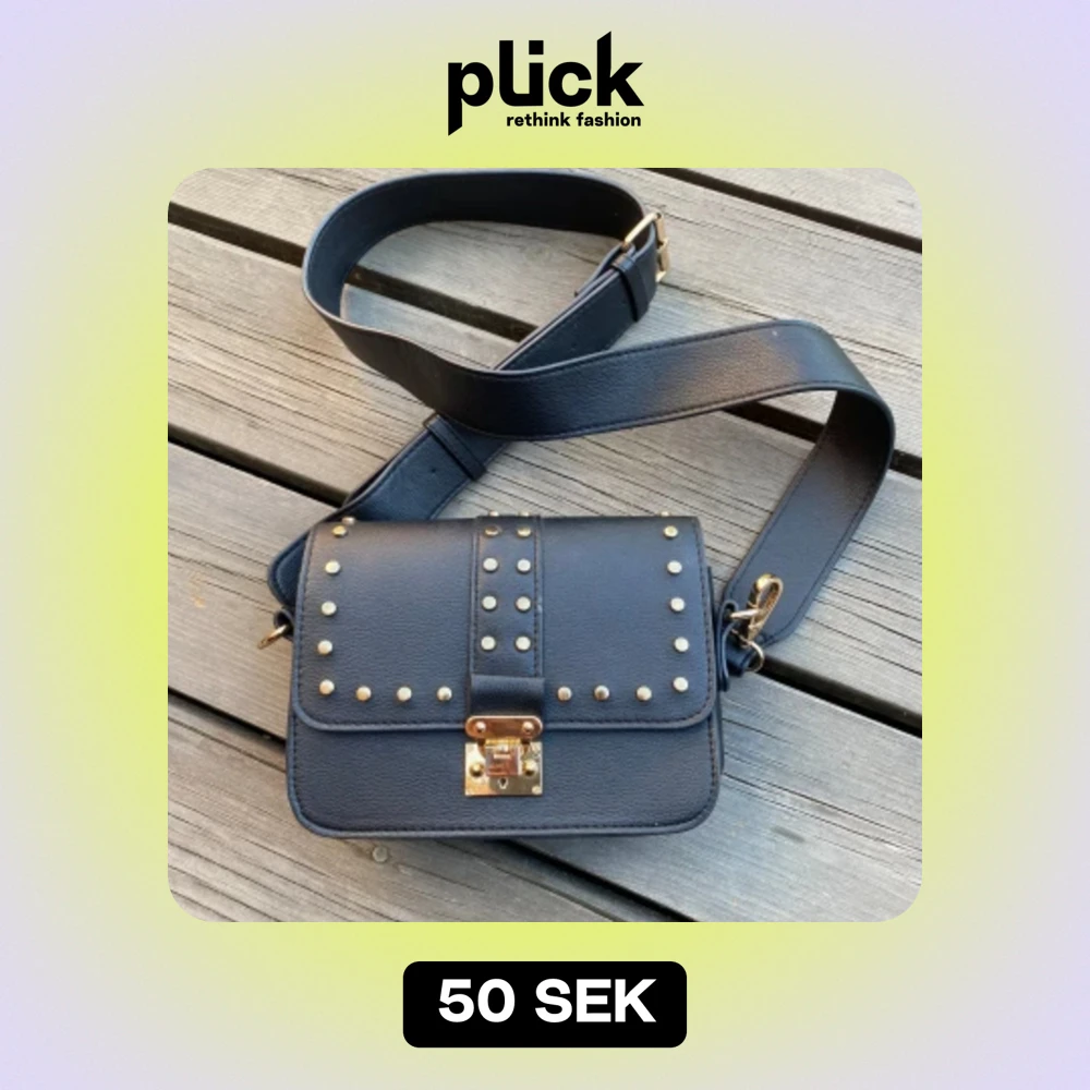 Liten svart axelbandsväska med guldiga nitar och justerbart axelband!