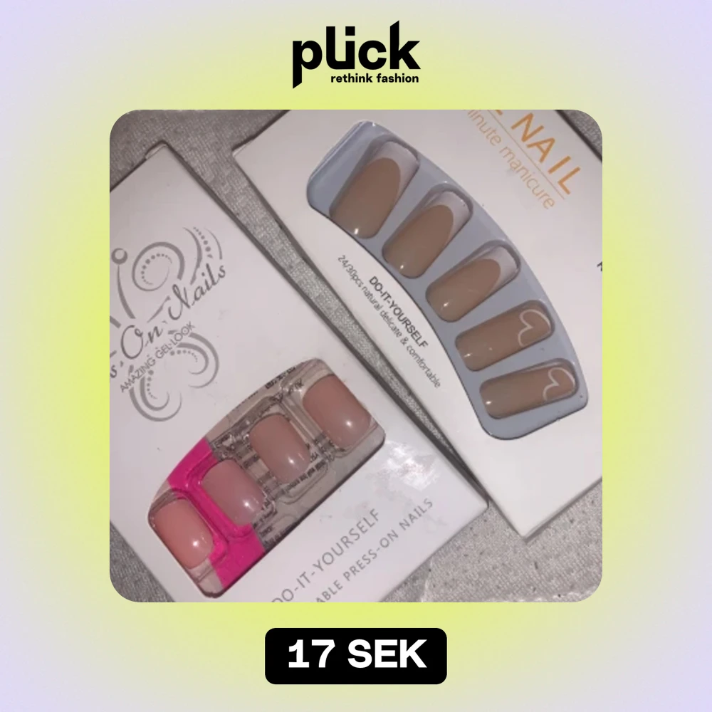 French tip med hjärtan 17kr och den rosa 12kr Dem är helt nya och oöppnade och Man får en nagelfil och nagel klister med 💞
