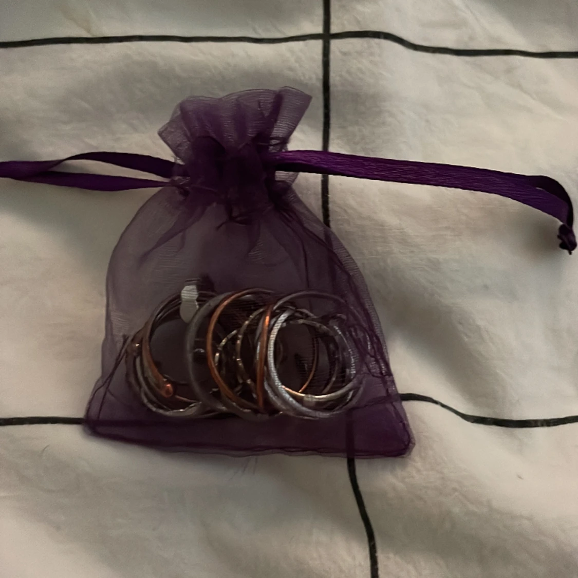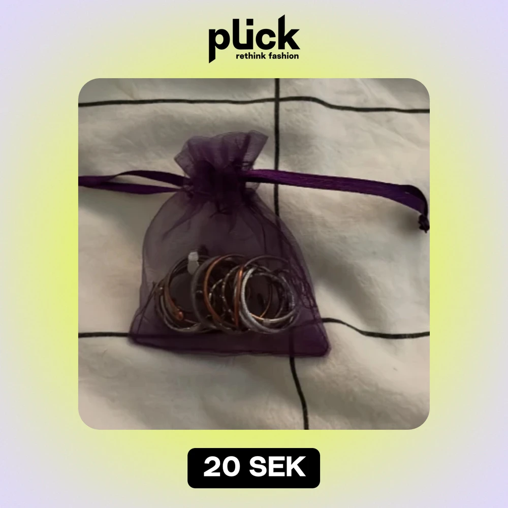 En massa blandade ringar som är i silver. Väldigt fina och vissa kan anpassas för storleken på fingret.
