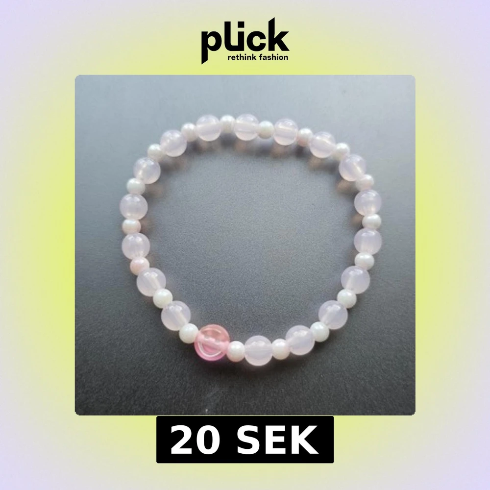 Supergulligt armband med växlande pärlor i ljusrosa och vitt. En extra detalj är den genomskinliga rosa smiley-pärlan som ger armbandet en lekfull vibe. Liten I storleken