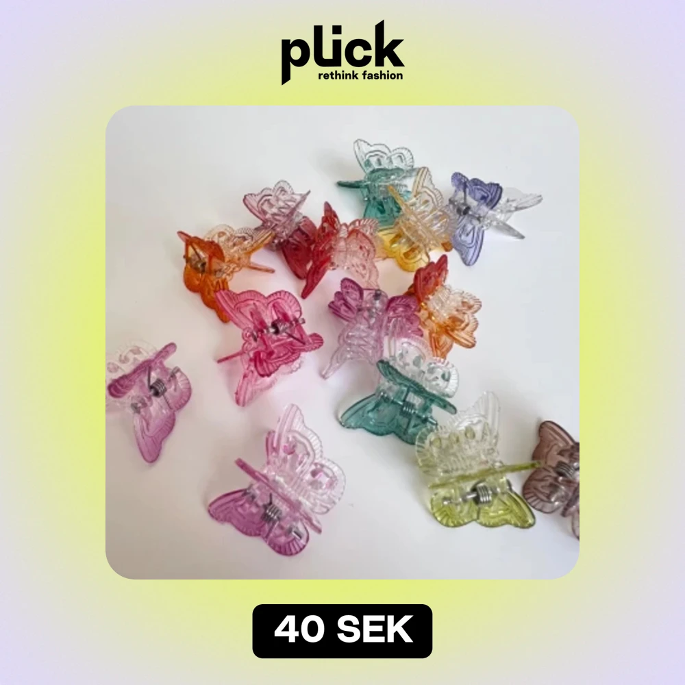 Mini-hårklämmor i from utav små fjärilar. Olika färger 💜💛🩷 (ALDRIG ANVÄNDA) Längd: 1,5 cm