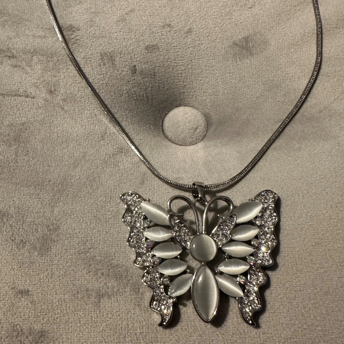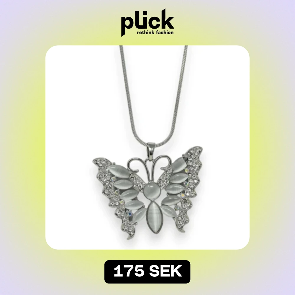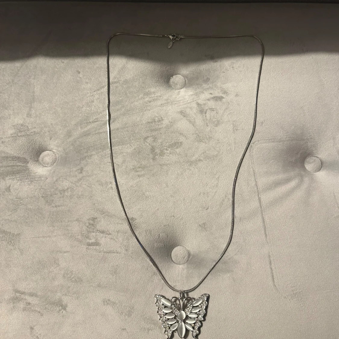 Så coolt och unikt fjärilshalsband. Köpt utomlands för 300kr. Det är i mycket bra skick. Tror det är rostfritt stål men inte helt säker. Längden tror jag är 70cm totalt.
