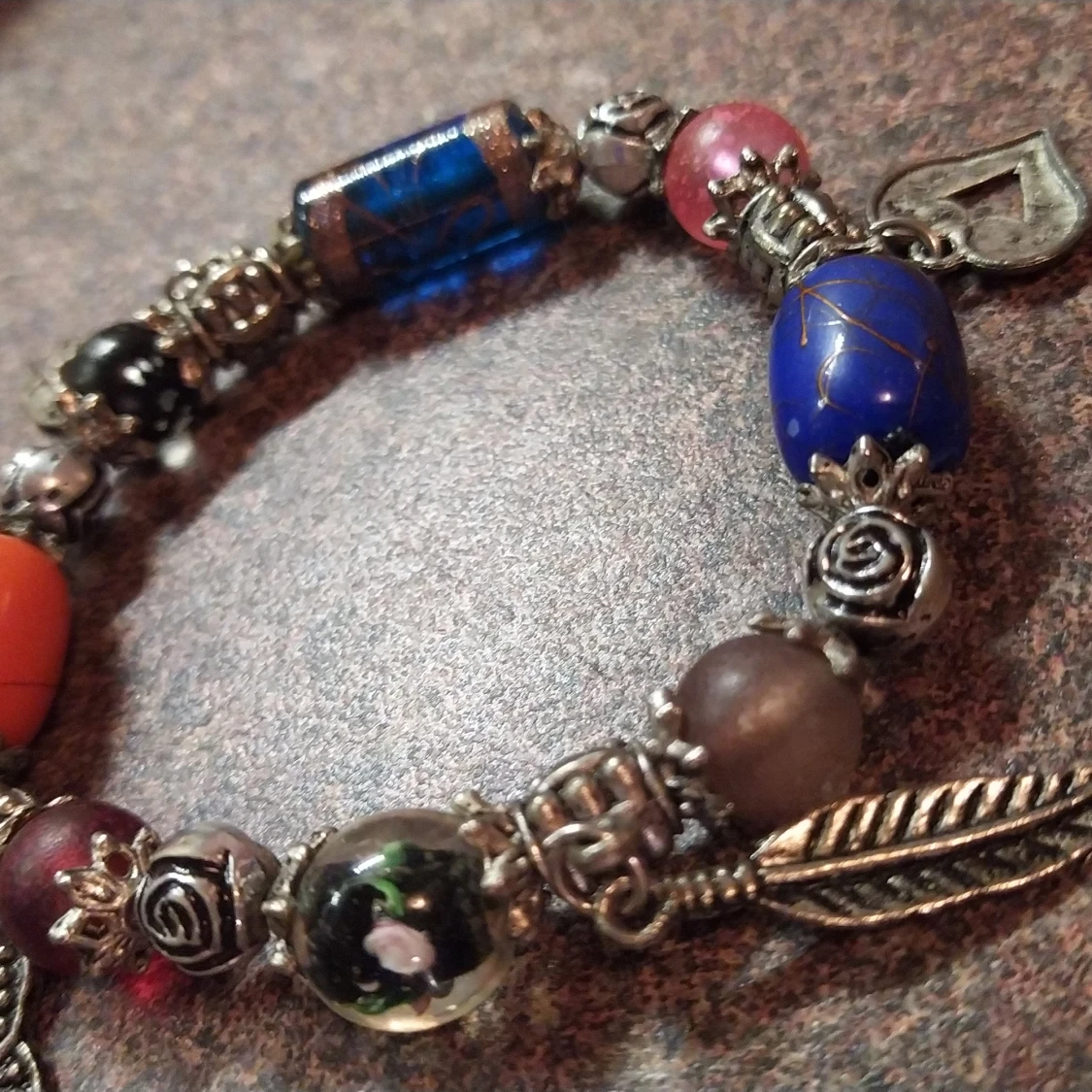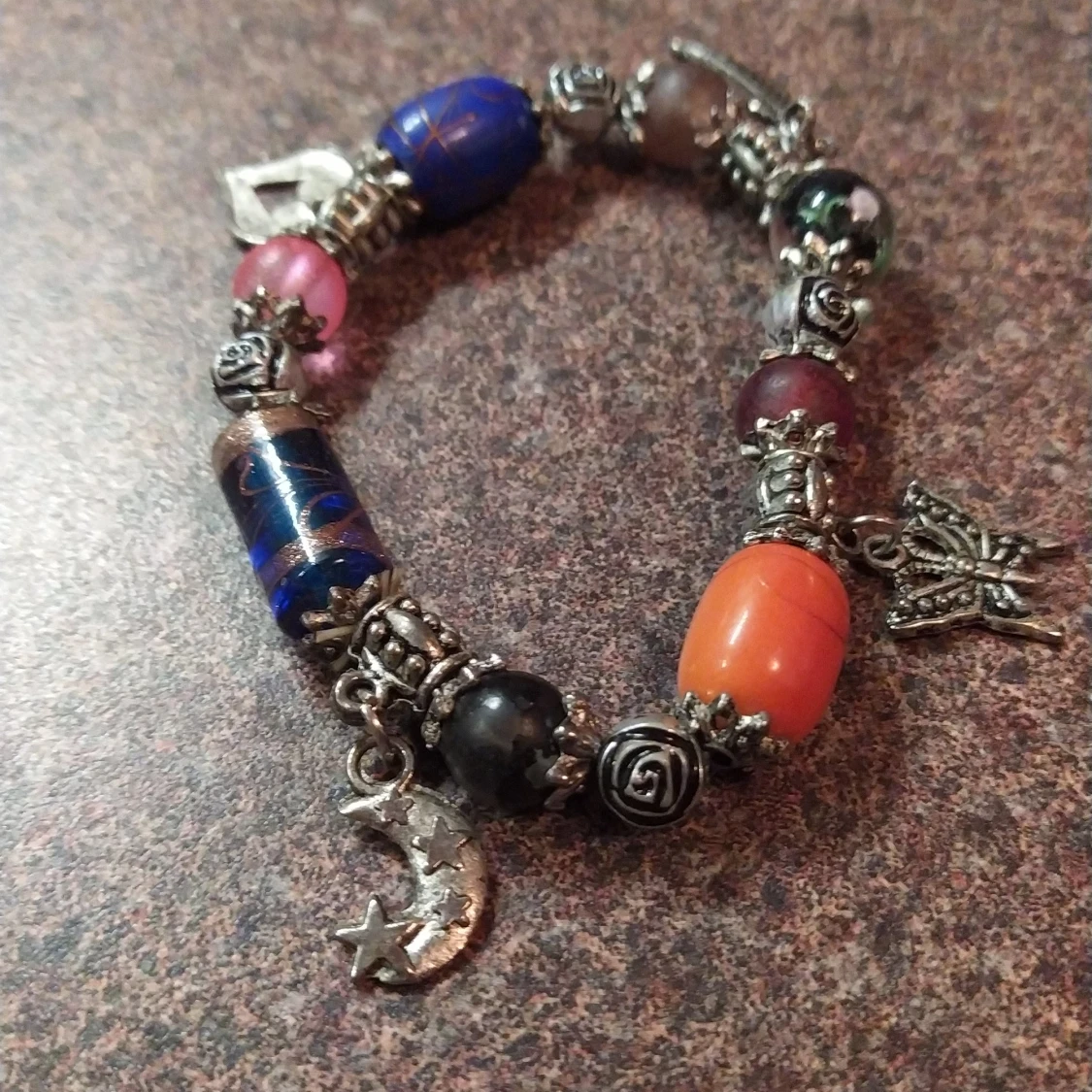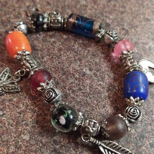 Ca 7 cm i diameter,gummiband. Fina pärlor och berlocker. Samfraktar gärna!