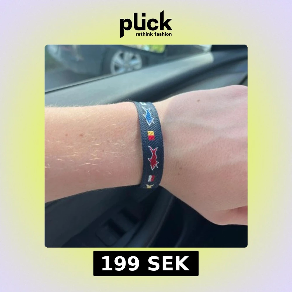 Snyggt marinblått armband med broderade färgglada flaggor och knytning. Perfekt accessoar för dig som gillar havet och vill ha en unik detalj på handleden. Justerbar storlek med knytband och coola mönster i rött, blått, gult och vitt.