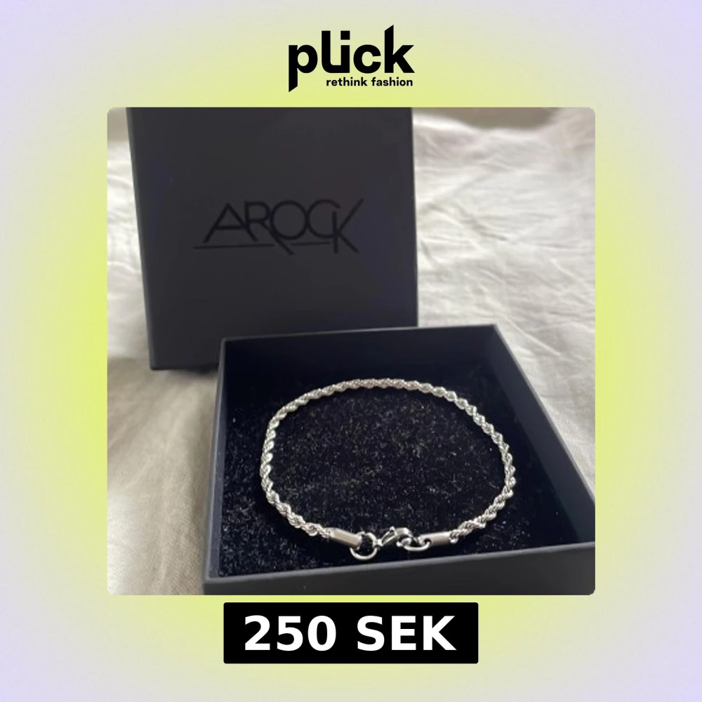 Stilrent armband från Arock i silverfärg med flätad kedja och klassiskt lås. Perfekt accessoar för dig som gillar minimalistisk och tidlös design. Kommer i original ask. Helt ny och köpt för 400 kr