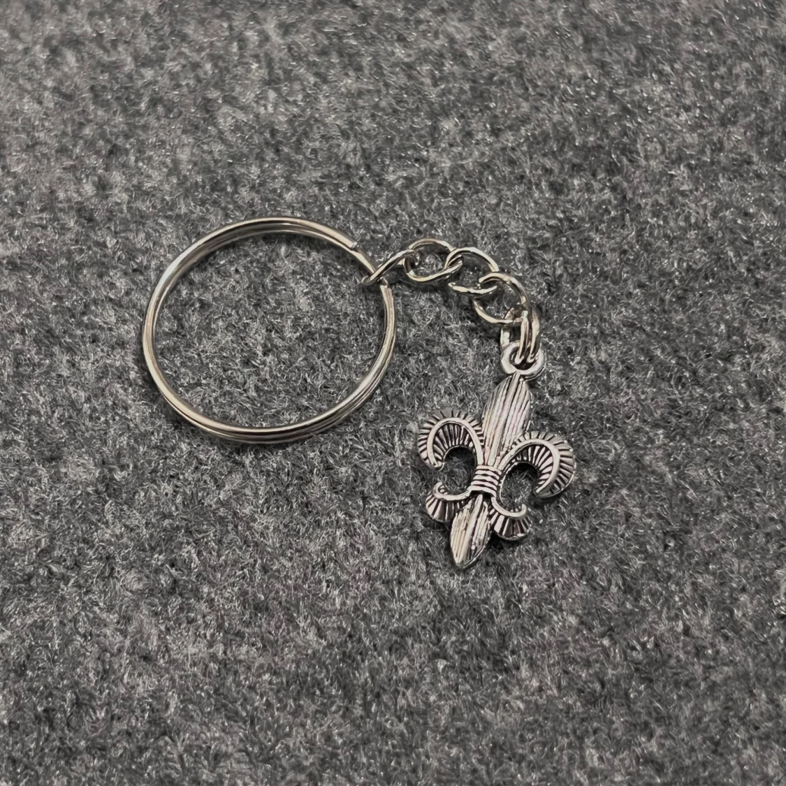 Stainless steel keyring with a sleek fleur-de-lis charm. Minimalist and versatile