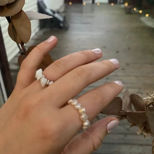 Ring med äkta Sötvattenspärlor: 45kr🤍 Ring med vita stenar och silverblommor: 30kr🤍 Tråden är elastisk och passar därför flera storlekar🤍