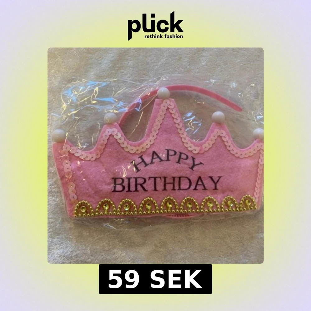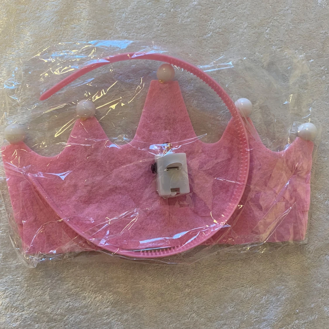 Fira med ett diadem i form av en krona med texten 'Happy Birthday'. Finns i rosa och blått, dekorerad med paljetter, pärlor och guldfärgade detaljer. Tillverkad i filt och plast, perfekt för födelsedagsfirande och festliga tillfällen. LED lampor med 7 färger, 59kr/st