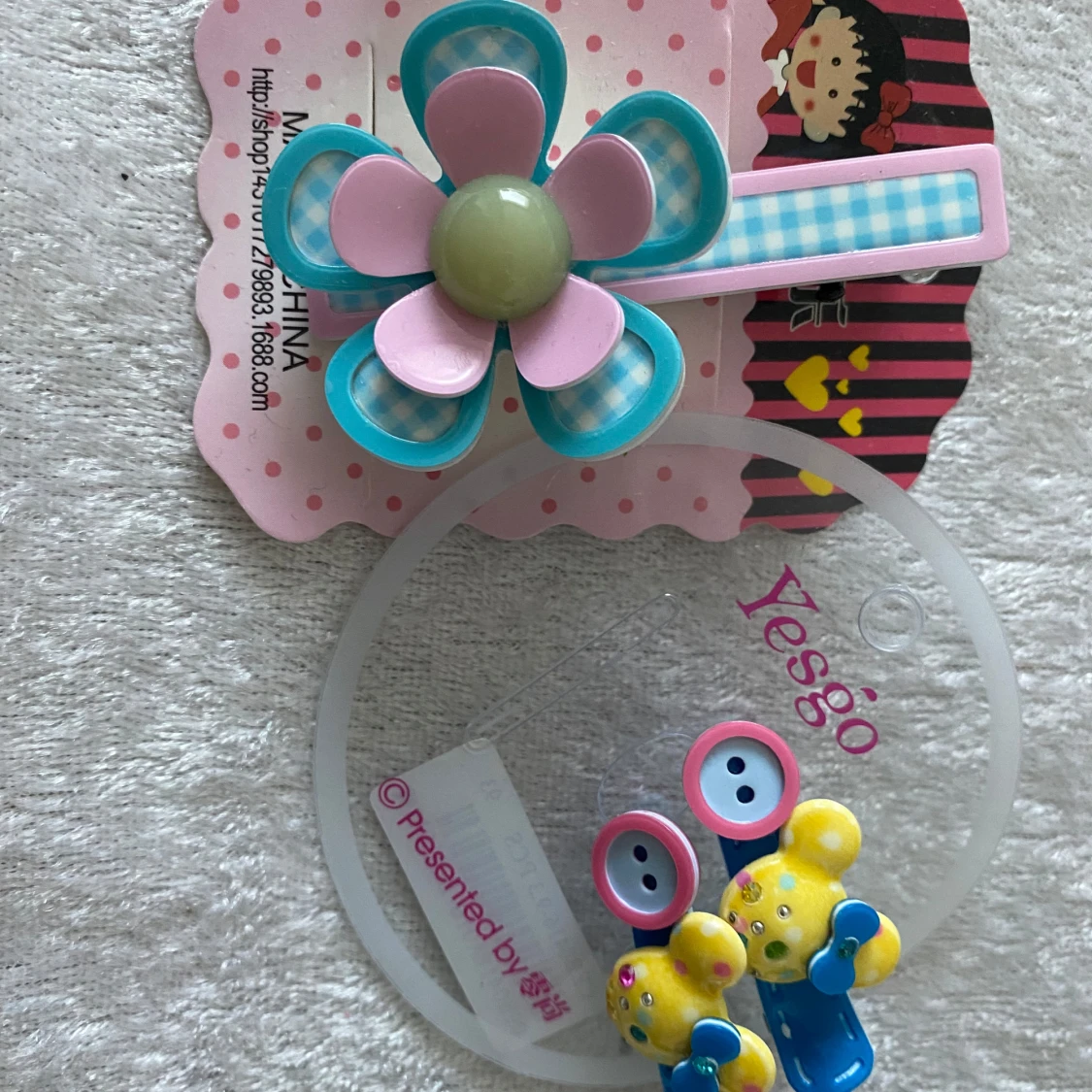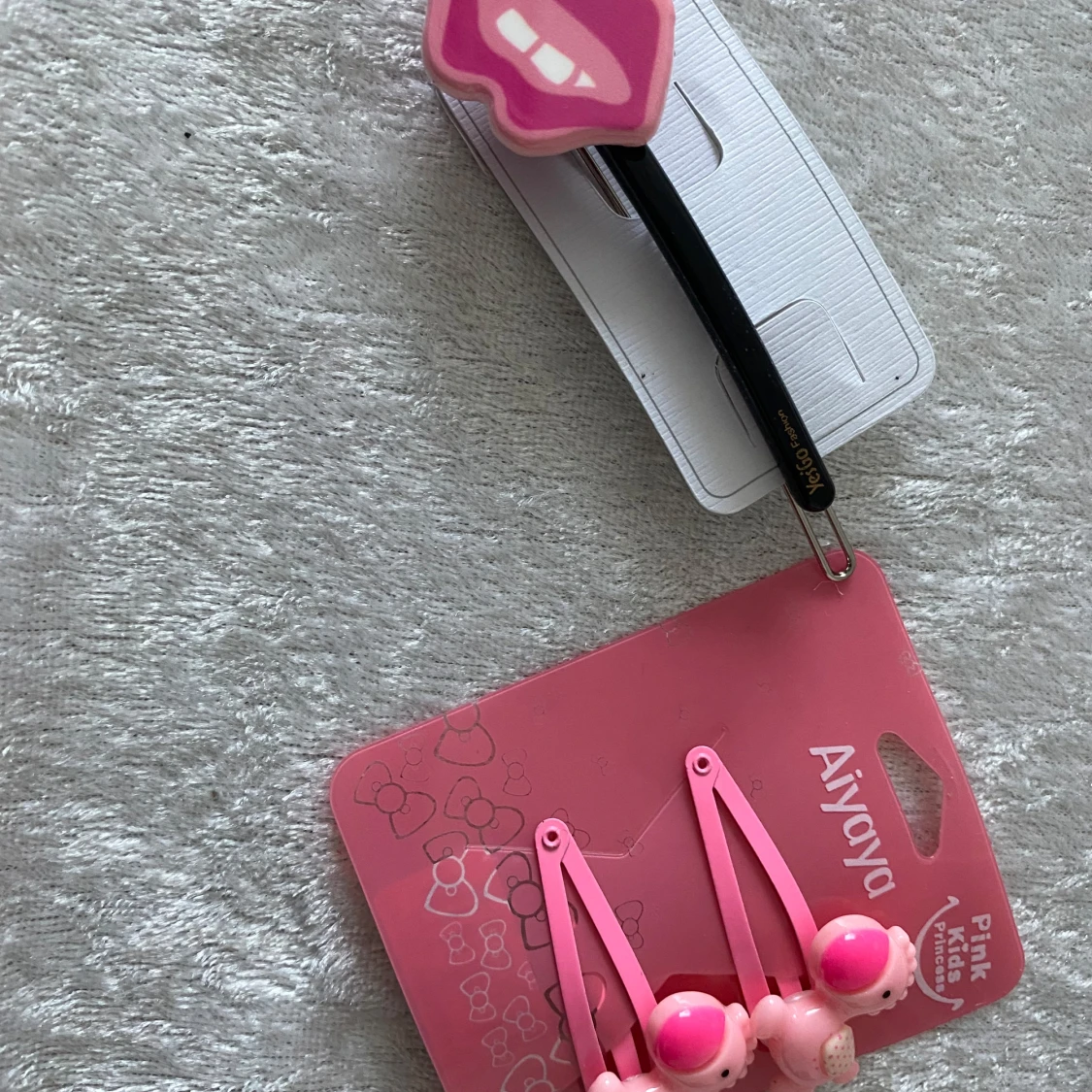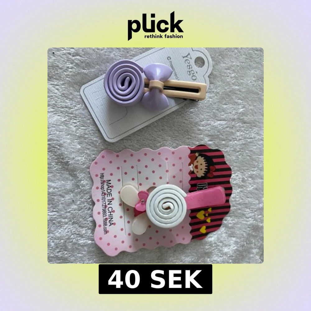 Säljer ett set med färgglada hårklämmor i olika former och motiv. Inkluderar klämmor med rosetter, läppar, nallebjörn och blommor. Perfekt för att ge en lekfull touch till din frisyr! 40kr/2 pak/bild , helt ny , samma frakt